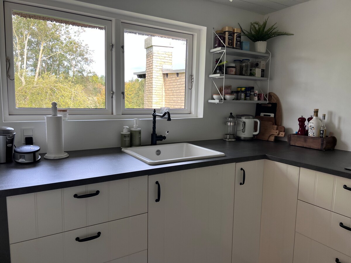 Indlu entle yasehlotyeni eneendawo ezintle. Ithala eligqunyiweyo, igumbi lokuhlala elinekhitshi elidibeneyo, amagumbi okulala amabini (elinye elikwindawo entle) Igumbi lokuhlambela elincinci. Indlu yeendwendwe enebhedi eyi-1.40m. 250.00./ubusuku obuqeshisayo kuphela kuyo yonke indawo. I-Jacuzzi yangaphandle, qesha i-400.00Kr ngosuku, kuphela ekuhlaleni kwayo. I-sauna nebhafu yomphunga, umatshini osebenza ngemali oza kubhatalwa 10.-Kr/10 imizuzu. Izinja zivumelekile: 100kr/ inja nosuku -Iibhayisekile, i-WiFi, i-gas grill, ilinen, ukusetyenziswa simahla