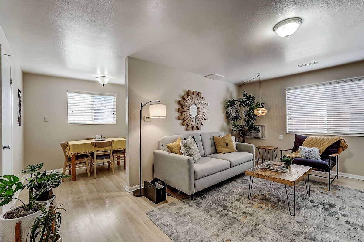 Wamkelekile kumgangatho wethu omkhulu wegumbi lokulala eliyi-2, iflethi yokuhlambela eyi-1, eyenziwe kakuhle kucingwa ngokuba tofotofo nesitayile. Phola ngakwindawo yokubasa igesi etofotofo emva kosuku ubuka iSalt Lake City. Ukuba lula kwakho yeyona nto iphambili kuthi kuba kukho indawo enye yokupaka equkiweyo. SineWiFi ekhawulezayo (1 Gig Fiber Service) kunye neeSmart TV. Fumana umxube ofanelekileyo wokuthi zava, ukuba lula, nomtsalane edolophini ebudeni bokuhlala kwakho eSalt Lake City. Bhukisha ngoku uze wonwabele zonke izinto ezifumaneka kwingingqi yethu