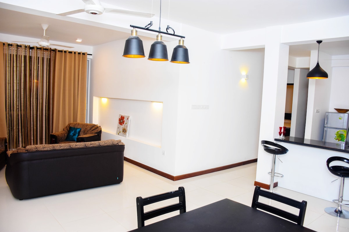 I-Beach Staycation Executive Luxury Flat, i-180 ° yokubona i-panoramic ye-Indian Ocean kunye nonxweme lwaseColombo. Iflethi yimizuzu eyi-15 ukuya kweyi-20 ukuya edolophini iColombo ibe yimizuzu eyi-2 xa uhamba ngeenyawo usiya elwandle kwiindlela zikaloliwe. Isakhiwo seflethi okanye indlu ekwicomplex sinepuli eseluphahleni nokhuseleko olufumaneka imini nobusuku. Igumbi lethu elinamagumbi okulala amabini, iibhedi ezintathu - lilungele Intsapho kunye nabantwana abafikelela kwabayi-3, i-Master-King Bed & En-suite, Ibhedi eyi-2- Queen kunye nebhedi enye ye-loft. Igumbi lokuhlambela leendwendwe. Umbuki Zindwendwe wakho yiSuperhost. Ayibalungelanga abantwana abancinci kakhulu.