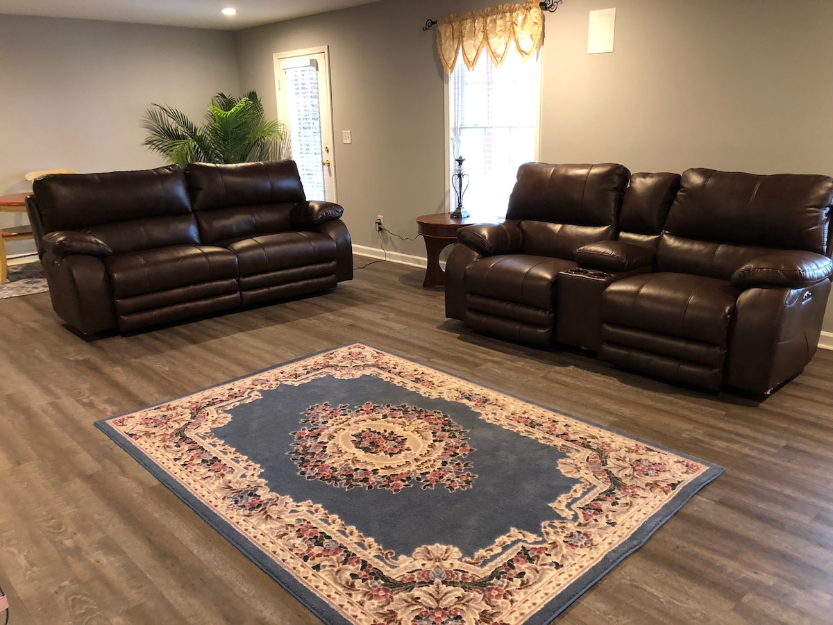 Private, Spacious, 2 bedroom unit perfect for the business or leisure traveler. Comfortable living/dining combo with a Roku 50 inch television with fire stick, a sectional sofa with room for everyone and warm, tasteful decor. You'll find everything you need to prep a quick meal in the kitchenette, and fresh linens and toiletries in the full bath. Private walkway and separate entrance to the unit. Located 2 miles away from Stone Mountain park in a safe and quiet community.