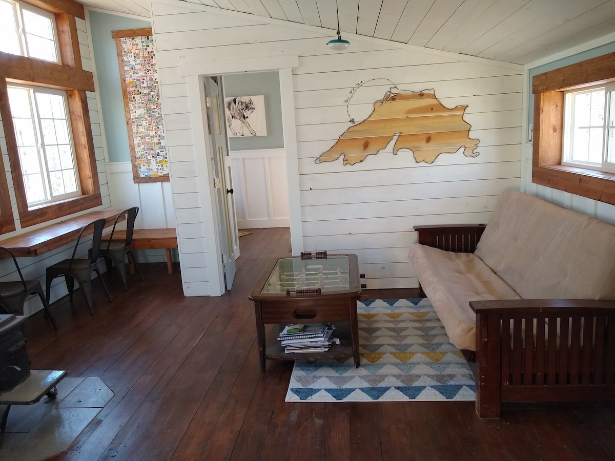 I-firefly yindlu yamaplanga entle ekwiihektare eziyi-2 zomhlaba/ indawo yokupaka kunye ne-sauna! Iifestile ezijikelezileyo zibonisa iipayini kunye nomtsalane omncinci weLake Supenior. Ilungele izinto ezonwabisayo kunye nezibini ezizimisele ukupakisha/ukupakisha ngaphandle. Nguwe umntu OCOCAYO (kufuneka utshayele ngomatshini wokutshayela, usule, ususe KONKE ukutya/inkunkuma/amatye/imvuthuluka uze ushiye kuqoqoshiwe!). Kubalulekile ukunika abantu abalandelayo indawo esempilweni abafuna indawo ezolileyo yokuphumla nokuzihlaziya. Kufuphi ne-Supenior Hiking Trail, eCoho/eBluefin Bay, eLutsen