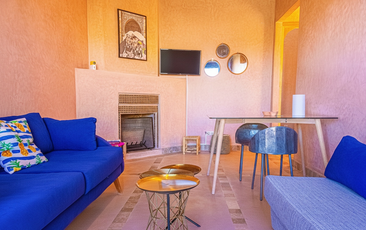 I-Riad elungiswe nyhani, kulula ukuyifumana , iveranda enkulu eneBhou nepuli . Ifumaneka kwindawo eqhelekileyo, ekhuselekileyo nethengisa kakhulu kwimizuzu eyi-3 uhamba ngeenyawo usuka kwindawo yokungena kwii-souks kwicala leSecret Garden, kwimyuziyam yamabhinqa... ibe ungaphantsi kwemizuzu eyi-20 uhamba ngeenyawo usuka kwiigadi zaseMajorelle nemizuzu eyi-30 usuka kwisithili saseGueliz. Imarike ekufuneka uyibone eBab Doukala ezantsi esitratweni . UMalika noSamad baza kukunceda ukuba unqwenela ukudluliselwa kwemali, uhambo, isidlo sakusasa, isidlo sangokuhlwa okanye abanye.