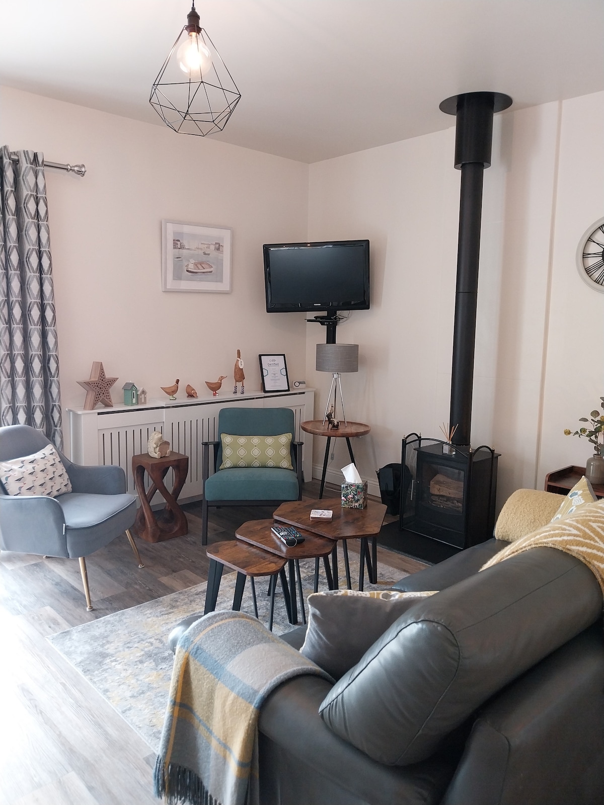 Istudiyo yindawo eqaqambileyo, yale mihla ecaleni kwekhaya lethu elisemaphandleni amahle aseCo Down. Yindawo enye enkulu (emalunga ne-36m2 enesilingi egqunyiweyo) enendawo yokuhlala, ibhedi enkulu, ibhedi enye nendawo yokutyela encinci. Sinendawo yokupaka eninzi negadi enkulu - ininzi indawo ephandle yeentsapho. Sisembindini weLecale; 3mi ukusuka eArdglass/Downpatrick kunye no-5mi waseStrangford Lough. Indawo entle yokonwabela indalo, iintaba, igalufa, ukuhamba ngesikhephe, ukuhamba elwandle nokuqubha elwandle.