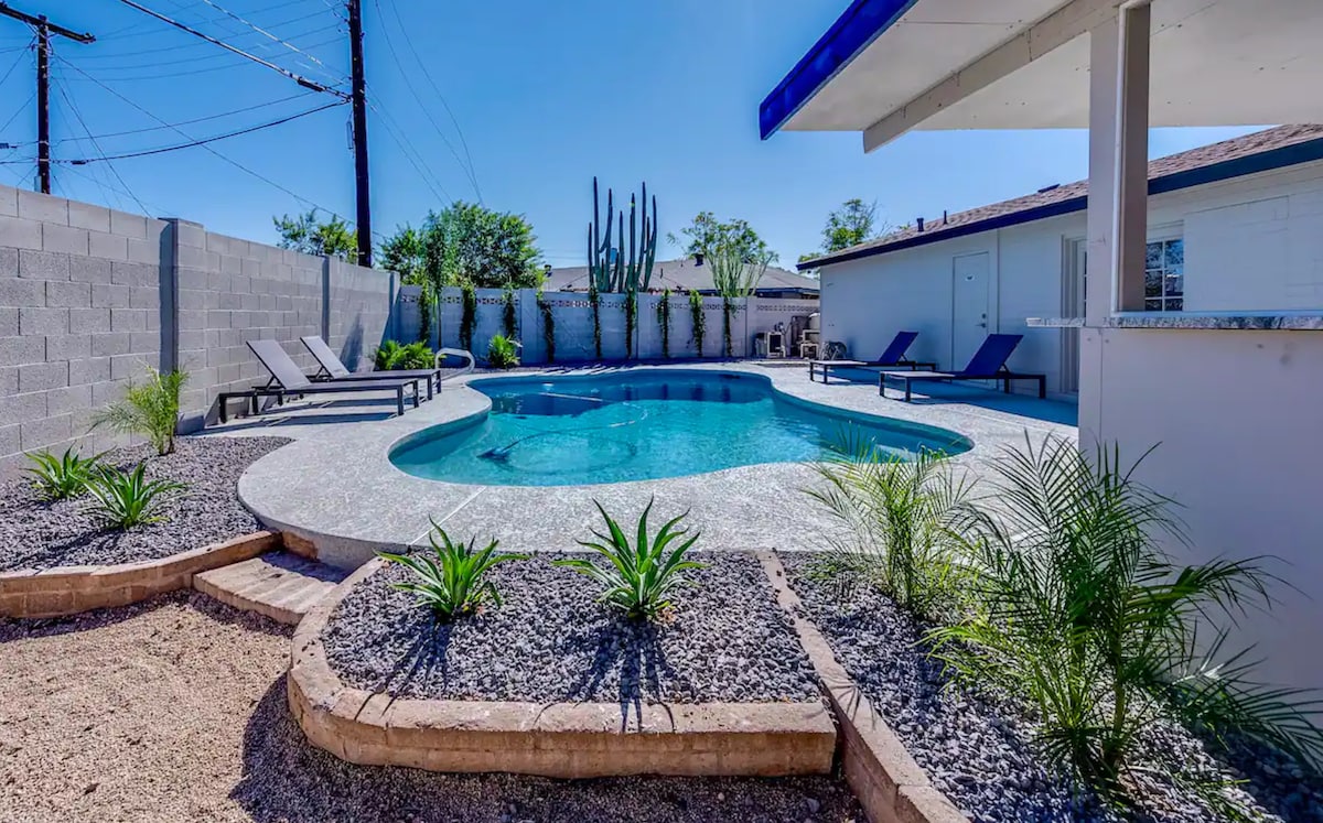 Ilawulwa yiSuperhost ephambili yeAZ eneendawo zokuhlala ezineenkwenkwezi eziyi-4 000nangaphezulu kweziyi-5. Yonke into ngaphakathi nangaphandle ihlaziywa ize idityaniswe kakuhle liqela labacebi basekuhlaleni. Amagumbi okulala amathathu, anento yonke yokutya ekhitshini. I-resort evulekileyo, esetyenziswa nguwe wedwa-njengeyadi enepuli enamanzi ashushu, indawo yokubraya nendawo yokutyela enomthunzi. Ngaphandle kwendawo yokuhlala ngaphandle kunye nokutshona kwelanga kweCamelback Mountain edumileyo. Iindawo zokuhlala ezithe cwaka ezingaphantsi kweemayile ukuya e-Old Town Scottsdale kunye ne-11+ mile greenbelt. Igaraji enetshaja ye-EV.