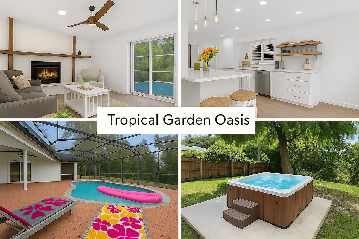 Tropical Garden Oasis, Pool & Hot Tub near Beach!