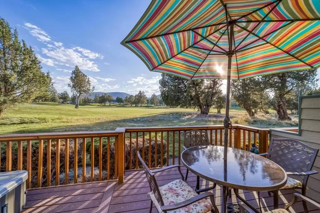 + Private hot tub +2 private decks + Indoor/outdoor pools +volleyball, basketball +On Ridge Course + Walk to Clubhouse +On 9th hole + Tennis and Pickleball +kiddie water park +On bike path +Recreation center + Parking +Spa, exercise room +Miniature putting course +Private Grill (propane) +Air Conditioning +Cline Butte Mtn. Biking +Near Smith Rock *$100 flat pet fee/pet