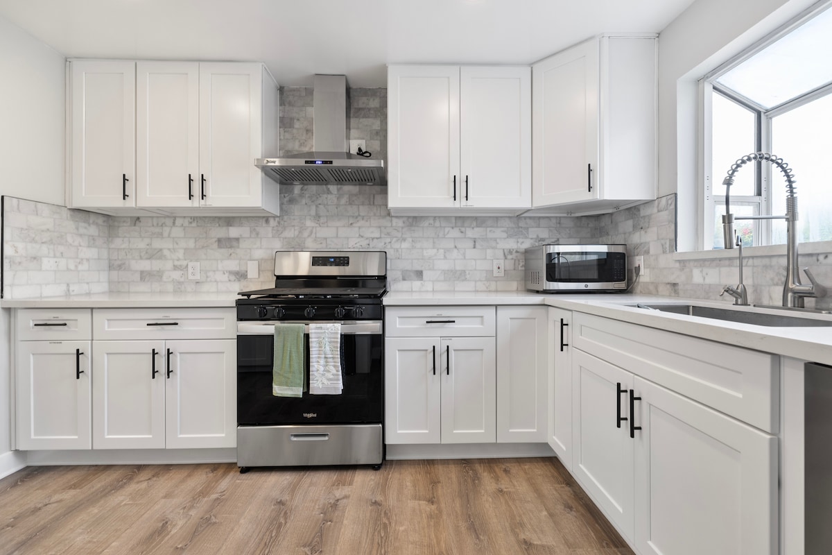 I-Oasis ehlaziyiweyo yaloo ndawo ifanelekileyo yokuya kule ndlu engasemva yabucala ehonjiswe kakuhle, enemibalabala edibanisa imihombiso yale mihla, yasemaphandleni, ekhuthazwa ngabantu baseYurophu kunye nobunewunewu bale mihla kunye nezibane zesibhakabhaka ezintle. Indawo yokuphumla enoxolo kwigadi ephucukileyo ngaphandle nje kwegumbi lokulala. SAMKELA UKUYA KUTSHO KWIZINJA EZIYI-2 NGEMALI YOKUCOCA YEZILWANYANA ZASEKHAYA EYONGEZELELEKILEYO EYI- $ 150. AZIKHO IIKATI. NCEDA UQAPHELE UKUBA KUKHO IIKHAMERA ZEVIDIYO ZANGAPHANDLE EZIYI-3 KWINDAWO YOKUPAKA NENDAWO YOKUNGENA IMOTO, UKUZE IINDWENDWE ZIKHUSELEKE.