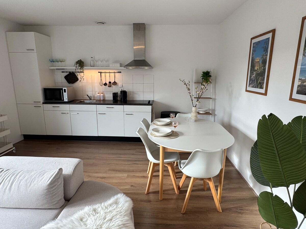 Kwindawo eyakhiwe yaseVeenendaal, siye saqonda ukuba iflethi yethu entle ye-B&B. Indawo YOKUPAKA esimahla kwindlu yakho wedwa, ibe ungangena ngqo kwigadi "yabucala" ukuya kwindawo yokungena. Igumbi lokuhlala elinencasa kakhulu nelinefenitshala elinekhitshi elivulekileyo; igumbi lokuhlambela elinendawo evulekileyo yokuhlamba, i-washbasin kunye nendlu yangasese; igumbi lokulala elinentwasahlobo yebhokisi ephindwe kabini, iwodrophu; indawo yokungena evulekileyo enesipili nendawo yokubeka impahla. Ngomnyango otyibilikayo, ungena kwithala elinegadi entle neendawo eziyimfihlo!