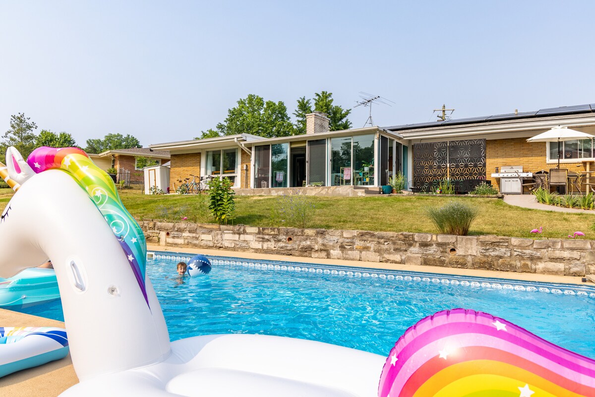 Imizuzu elishumi elinesihlanu ukusuka edolophini iCincinnati, le ndlu isemaphandleni ihonjiswe kakuhle yiyo yodwa kwisitrato sayo. Indawo yokupaka eninzi, ilala ukuya kutsho kwezintandathu nekhitshi elinento yonke, indawo yokosa inyama, iKeurig kunye neyadi ebiyelweyo elungele amantshontsho okanye abantwana. I-Wi-fi enamandla, i-butcher block countertop, umatshini wokwenza umkhenkce nefriji ye-retro. Indawo yokudibana etofotofo yabahlobo nentsapho.