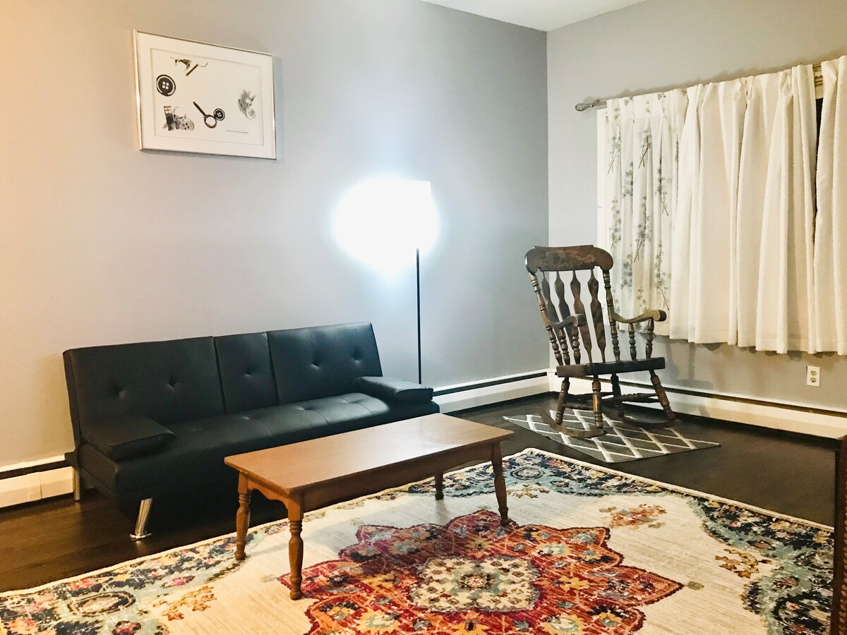 Wamkelekile kwindawo yakho etofotofo eNorth Brunswick, NJ! Le flethi ekumgangatho wokuqala inendawo yokungena yabucala namagumbi amabini okulala ukuze uphole kakuhle. Yonwabela ukutya okuphekwe ekhaya kwikhitshi elinento yonke okanye kwigumbi lokutyela, uze uzipholele ecaleni kwendawo yokubasa umlilo yombane kwigumbi lokuhlala. Yonwabela ukubukela izinto ezithandwayo kwiNetflix, kwiDisney+, kwiPrime Video nakwiHulu, ngoxa uhlala usebenza kwindawo elungiselelwe ukusebenzela kuyo. Yonwabela ukuba tofotofo nokulula kule ndawo yeholide ihonjiswe kakuhle!