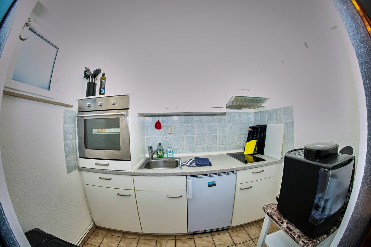 Iflethi okanye indlu ekwicomplex enefenitshala elula enefenitshala enegumbi lokuhlamba labucala nekhitshi elincinci. Ilungele izangoma! Umgangatho ophantsi, indawo yokungena yabucala, i-WiFi, indawo ethe cwaka kodwa esembindini imizuzu eyi-10 yokuhamba ukuya kwisikhululo sikaloliwe esiphambili, iivenkile ezinkulu, iivenkile zokutyela kunye neendawo zokutyela zikumgama wokuhamba eKirchhofallee. Ipaki entle ikufuphi.