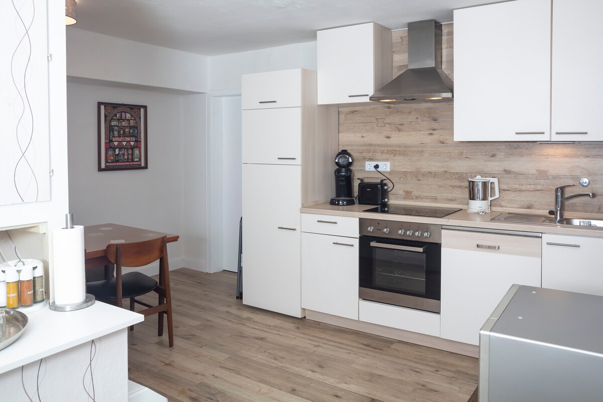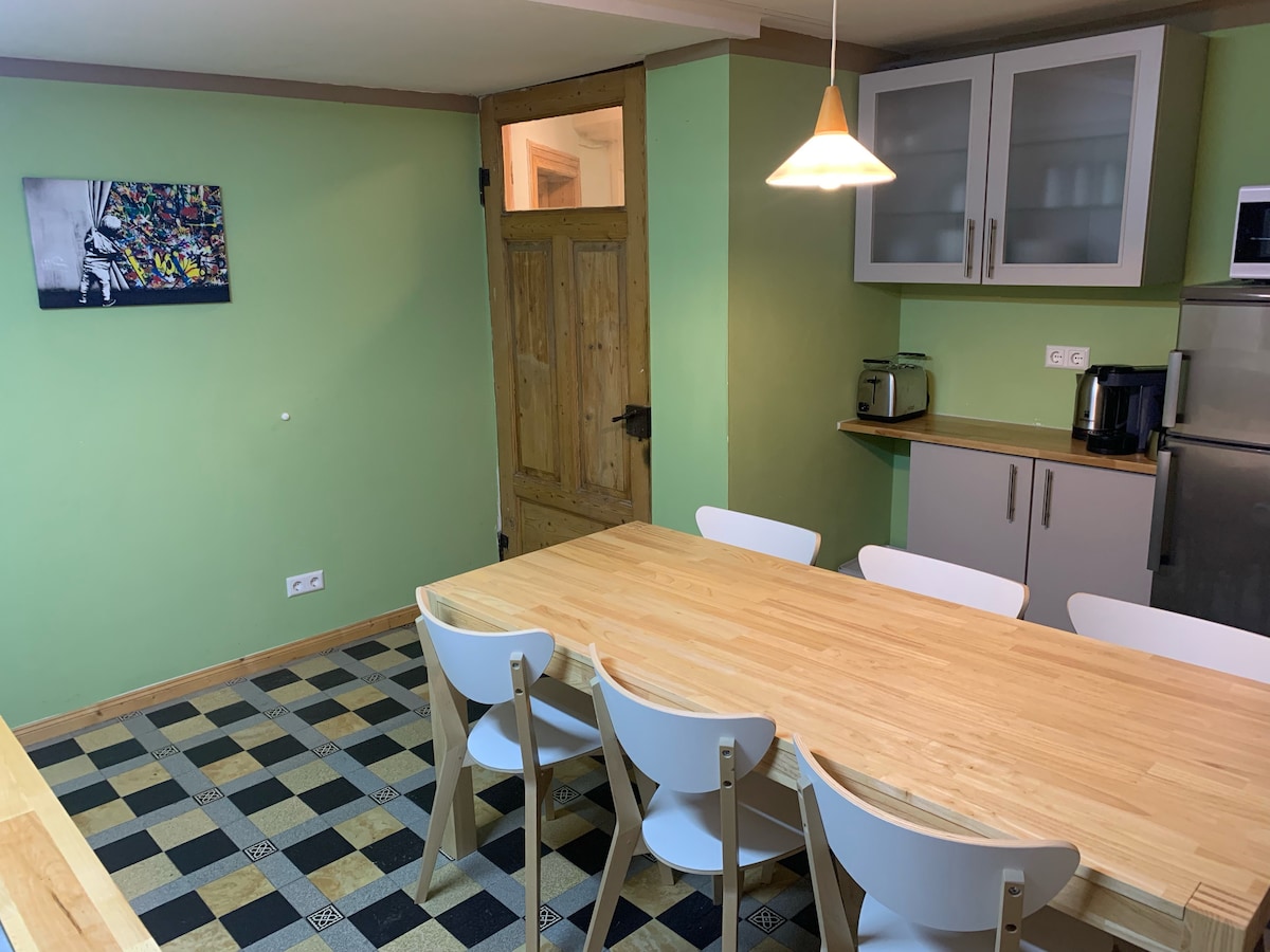 Libala iinkxalabo zakho – kule ndawo ivulekile nethuleyo yokuhlala. Iflethi yeholide esandul 'ukulungiswa nenefenitshala yale mihla kumgangatho ophantsi ikumema ukuba uhlale. Le flethi inokuthatha abantu abathathu ibe inekhitshi elinento yonke. Umnyango ongasemva ecaleni kwekhitshi uya ngqo kwindawo ephandle, apho unokuhlala khona nendawo yokosa inyama. Ibhedi evulekileyo eyi-1.8x2m, kunye nesofa etsalwayo ikumema ukuba ulale.