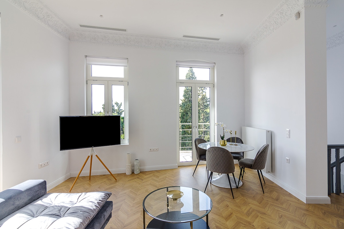 Indlu ekhethekileyo yasebukhosini kwimizuzu nje eyi-8 ukusuka kwisikhululo seenqwelo-moya iAthens. Njengemyuziyam yabucala, inezinto zakudala, iibhedi ezinkulu eziyi-200×220, iveranda enkulu yabucala, kunye nokungena phezu kophahla ukuze ubone iindawo ezintle neenqwelo-moya. Ilungele iintsapho, ibe inendawo eninzi nobuntu obungazukuyifumana kwenye indawo kule ndawo. Iingcango zeglasi zigcwalisa indawo ngokukhanya kwendalo zize zifake isibhakabhaka esivulekileyo — indawo ekhethekileyo edibanisa umtsalane wakudala neendawo ezinqabileyo zesixeko.
