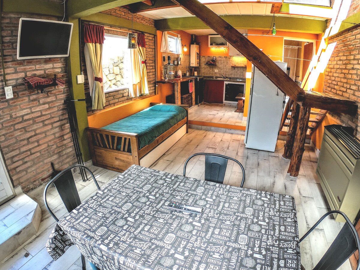 "Cerro Frias" cabin is on an elevation of "Las Cumbres" park. It's ideal for couples or two adult friends and a child, since there's only one bedroom. In case it's needed a box spring style single bed or crib can be added. In the bedrooms, the windows have curtains made of black out fabric, this type of curtain prevents light from coming in and offers a good rest. We remind you that in the summer it dawns very early.