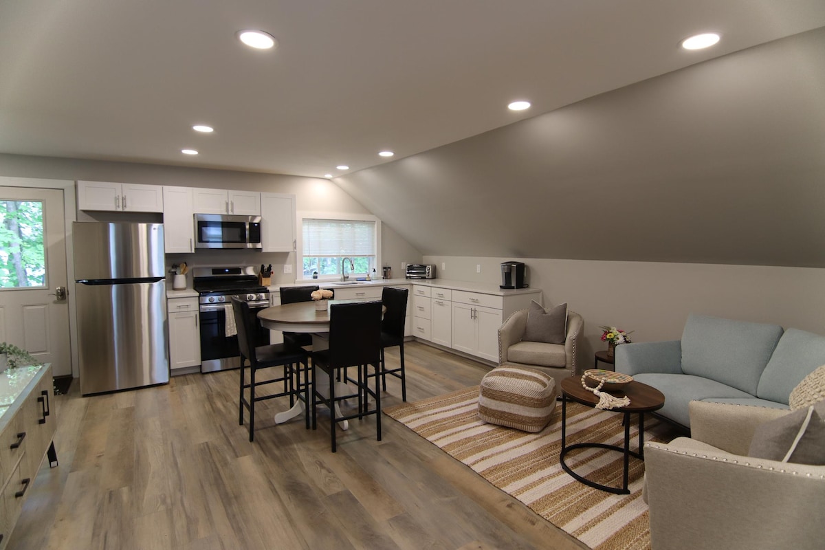 Yonwabela ukuhlala kwindawo entle kule flethi intsha ezimeleyo esembindini wedolophu yase-Ellsworth. Kwiimayile nje eziyi-18 ukusuka Kwiziko Leendwendwe Lepaki Yelizwe yaseAcadia neemayile eziyi-31 ukusuka kwicala leSchoodic Peninsula kule paki, lelona khaya lifanelekileyo lokubuka ezona ndawo zintle ezingaselunxwemeni lwaseMaine. Phuma uze uhambe uye kwiivenkile zasekuhlaleni, kwizindlu zekofu, kwindawo yokutyela entle, kwilayibrari, nakwezinye iindawo xa uhamba nje umgama omfutshane xa uhamba ngeenyawo usuka emnyango wakho. Uza kufumana neepaki, iindlela zokunyuka intaba ezikufutshane ukuze uphumle uze uzonwabise.
