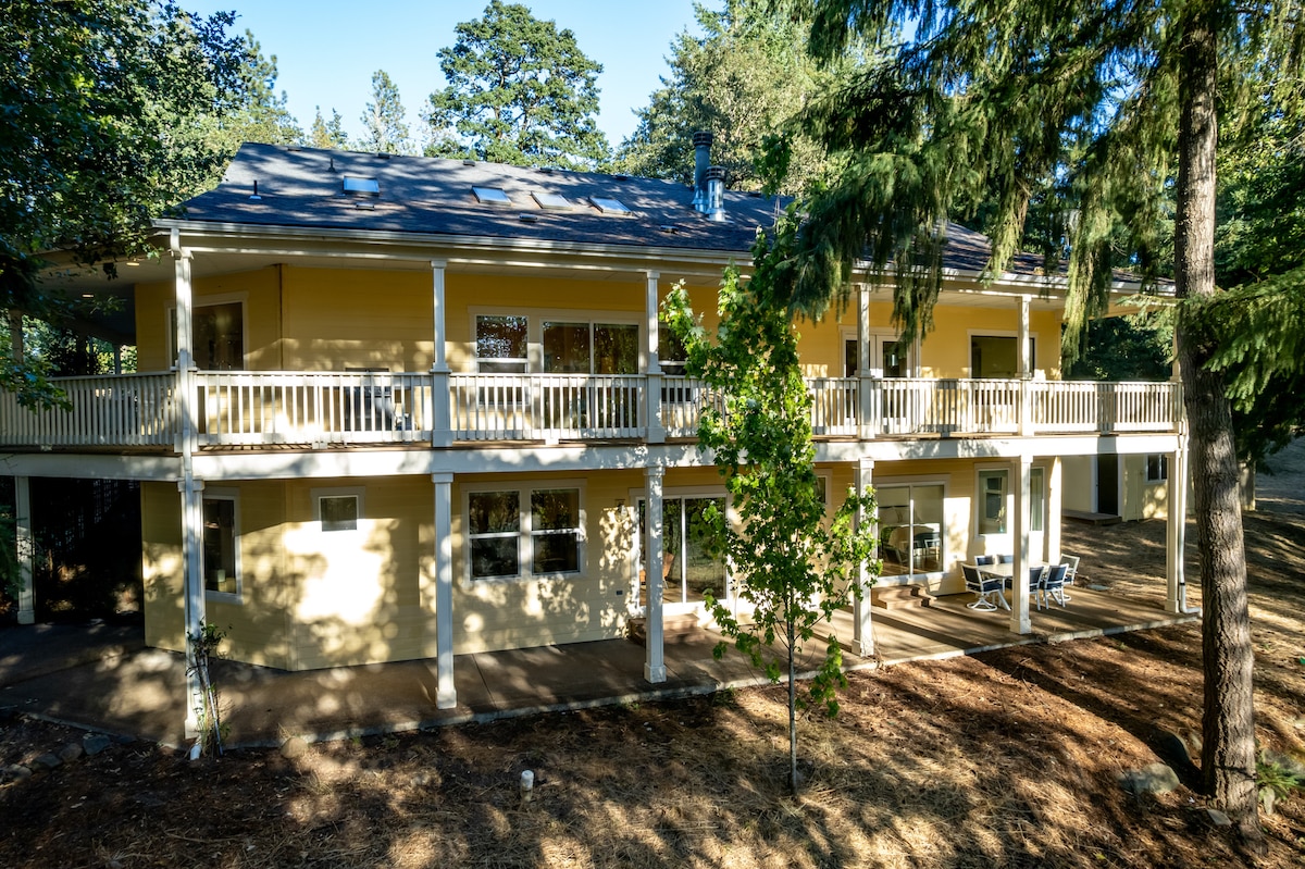 Sebenzisa le ndawo njengendawo yokuzonwabisa kuzo zonke izinto onokuzonwabela. Imizuzu nje eyi-20 ukusuka kwisikhululo seenqwelo-moya sase-Eugene. Uza konwabela ukuhamba kancinci ukuya kunxweme lwaseOregon, ukunyuka intaba, ukungcamla iwayini, iifama zemarike zasekuhlaleni nokungakumbi. Singamafama angotshani aqhelekileyo kunye namafama e-hazelnut ahlala ngasemnyango nefama kule ndlu. Eli khaya likwigadi ye-hazelnut evuthiweyo ejikelezwe ziindawo zengca. Iindawo ezintle naphi na apho ujonga khona. **Nceda uqaphele: Akuvumelekanga ukutshaya naphi na kwindlu yethu