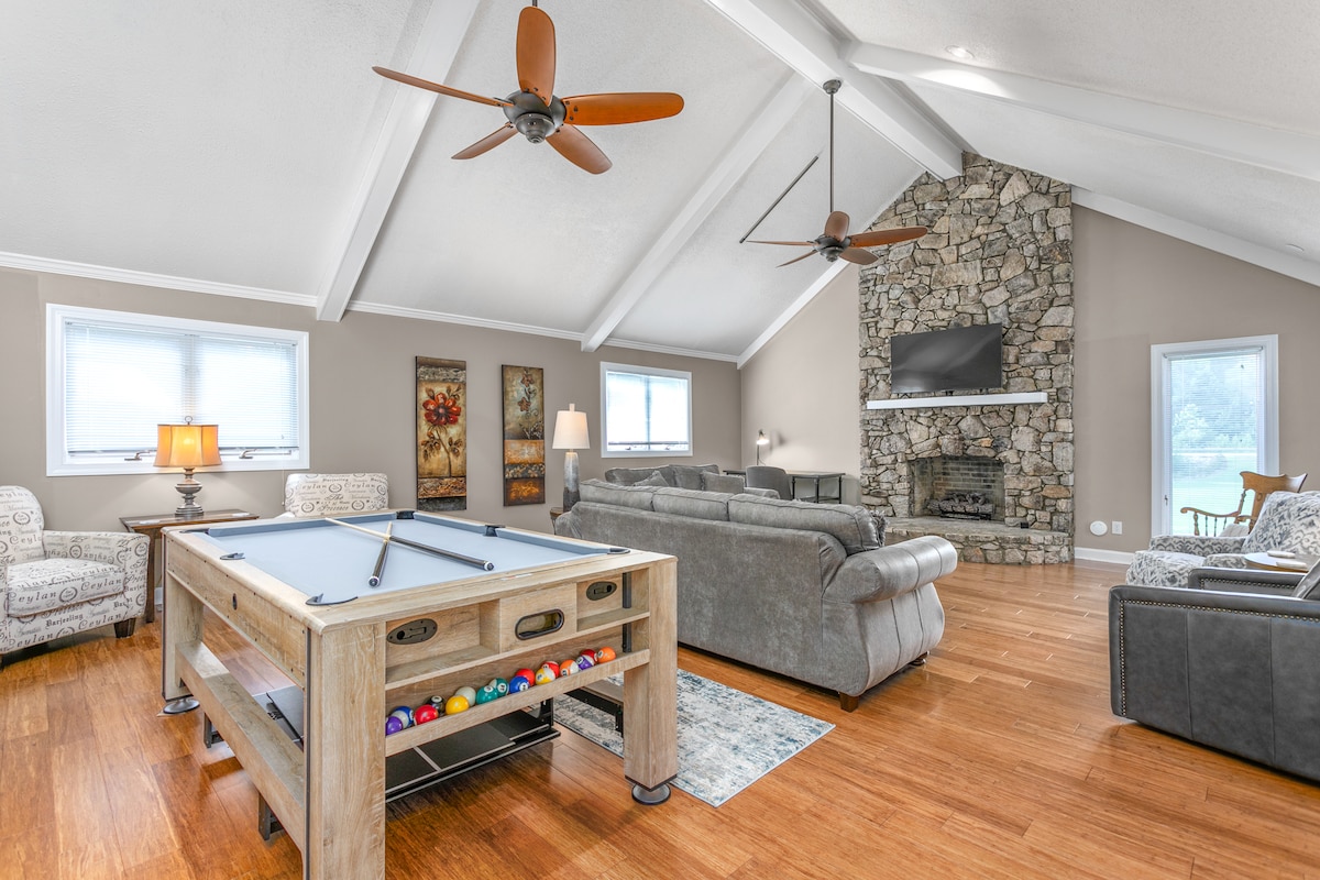 Ibhafu enamanzi ashushu, indawo yomlilo, nendawo yokuhamba uye edolophini—le ndawo yeholide ye-2BR etofotofo yenzelwe ukuphumla nokudibana kwakhona. Ziphumlele kwi-spa yabantu abayi-8, uhambe ngeenyawo uye kwiivenkile zokutyela neendawo zokwenza ibhiya zasekuhlaleni, okanye wonwabele ubusuku bomdlalo kwitafile yepool enokutshintshwa. • Ibhafu enamanzi ashushu/ispa enkulu yabantu abayi-8 • Indawo yokuhlala phandle + indawo yomlilo eyenziwe ngokukhethekileyo •Ungahamba ngeenyawo usiya kwiziko ledolophu (iivenkile zokutyela, iindawo zokwenza ibhiya neevenkile) • Itafile yepulini/yetafile yokutyela enokusongwa •IiTV ezikwi-intanethi kuwo onke amagumbi • Ikhitshi elinento yonke + iiglasi ze-cocktail