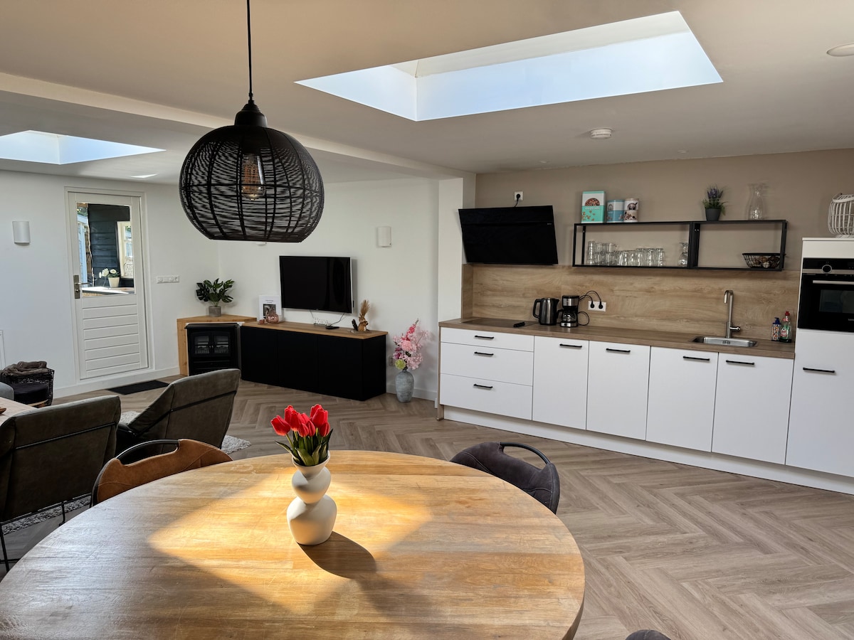 I-B&B yethu inazo zonke izinto zale mihla ezifana nekhitshi lale mihla, izibane zePhilips hue, i-smart TV neQuooker. Iveranda etofotofo igcwele i-jacuzzi entle nesitovu seplanga. I-B&B enegadi enkulu yabucala neendawo ezingenazithintelo ikhuselwe ngokupheleleyo kwindlu esefama ngocingo ibe ifikeleleka kuwe kuphela njengondwendwe. Ukusuka kwi-sauna yomgqomo waseFinland kwi-terrace esecaleni kwayo, ungajonga amadlelo esixeko amahle. Isidlo sakusasa esimnandi osithandayo asinyanzelekanga.