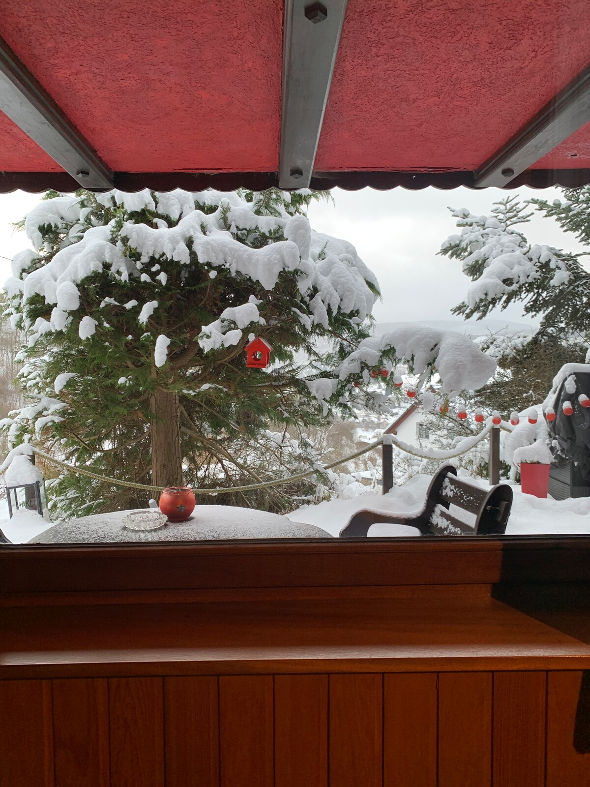 Phola uze uphole – kule ndlu isemaphandleni yale mihla netofotofo. Indawo entle phezu kweenduli namahlathi aseSauerland yi-balm yomphefumlo ngalo lonke ixesha lonyaka. Nokuba entwasahlobo xa yonke into ikhanya ngohlaza oluqaqambileyo, ehlotyeni xa ukutshona kwelanga kuhamba nengokuhlwa yethu, ekwindla xa inkungu ixhonywe phakathi kwemithi okanye ebusika xa yonke into imhlophe. Zininzi izinto ezenziwayo ezahlukahlukeneyo kule ndawo