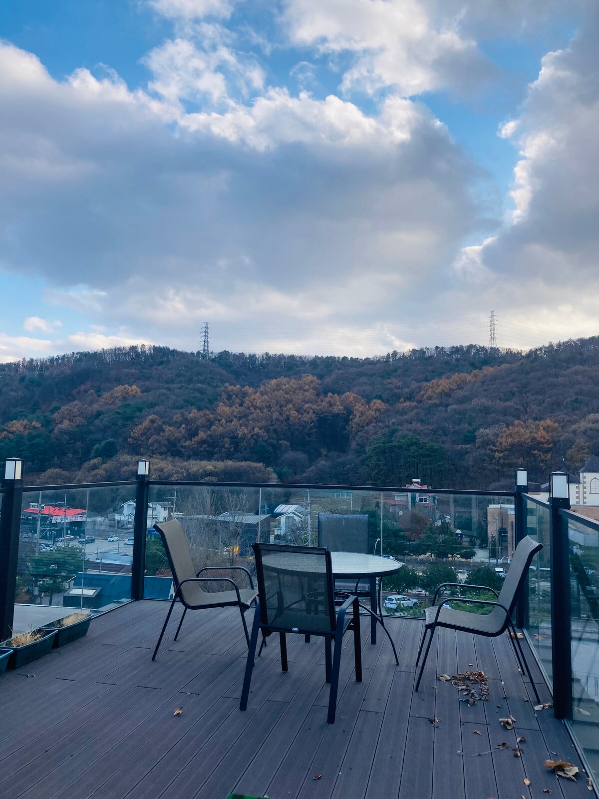 Yindawo apho unokusebenzisa wonke umgangatho wesithathu wendlu yentsapho enye kwiintaba zaseGwanggyosan, eSinbong-dong, eYongin Suji-gu, kwimizuzu eyi-30 ngemoto ukusuka kwindawo yaseGangnam. Ndicinga ukuba yindawo apho izibini zinokuchitha impela-veki kwindawo esecaleni netofotofo ejikelezwe yindalo ~ Ayibonakali ihonjiswe kakuhle njengehotele, kodwa ilungiselelwe ukukwenza uzive ngathi usekhaya ngoxa ubukele iNetflix enetafile evulekileyo enabantu abayi-6, itafile evulekileyo enabantu abayi-6, neprojektha ye-Samsung freestyle. Ikwadume njengengingqi eneentlobo ngeentlobo zeevenkile zokutyela ezikufutshane. Ukupheka okulula kunokwenzeka kwindawo yokuhlala, kodwa izitya ezinomsi ezifana ne-barbecue zivumelekile ngaphandle kuphela. Kukho idekhi enkulu ephandle phezu kophahla njengoko kubonisiwe kwifoto. Nceda uqaphele ukuba akukho kufudumeza kuba phandle ebusika ~ Ukongezelela kwindlela yokuhamba ngeenyawo yasekuhlaleni, kukho ikhosi yeeyure ezine ubude beyure kunye nebala elifutshane lokunyuka intaba eGwangyo. Kukho iMyeongjang Hongjong Bakery neSamdong Soba ecaleni kwayo.