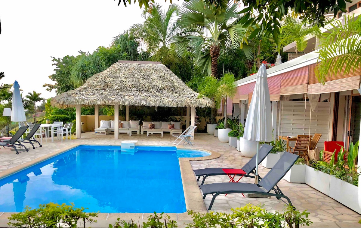 Eli gumbi lixhotyiswe ngokupheleleyo likwinqanaba lepuli lendlu yentsapho yethu. Le ndlu ithe cwaka, indawo yokuhlala inokufikelela kwipuli enkulu nenhle. Igadi izele yimithi yeziqhamo kunye neentyatyambo zetropiki zazo zonke iintlobo. Sihlala kwisiza, sisoloko sikulungele ukukwazisa ukuba kukho enye into oyidingayo. Le ndlu ikhuselwe ngesango lombane. Ifumaneka kakuhle kwaye ixhotyiswe ngokupheleleyo, le ndawo yokuhlala iya kukukhohlisa ngokukhululeka kwayo kunye neendawo ezintle zesiqithi saseMoorea.