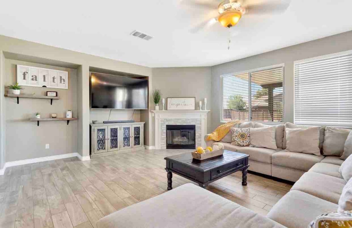 Ikhaya Elitsha Elihlaziyiweyo Elinebhedi Enkulu! Ibhedi evulekileyo emine/indawo yokuhlambela emithathu ekwindawo ekhuselekileyo nenobubele esembindini weVictorville! Yonke le ndlu yinkcazelo yokwenyani yobunewunewu kunye nezinto zayo ezintle zale mihla kunye nefenitshala. Le ndawo inento yonke inendawo yokuhlala yeLuxury, i-Wi-Fi ekhawulezayo, i-Smart TV, umatshini wokwenza ikofu, umatshini wokuhlamba impahla nowokomisa impahla, itafile yepuli nokunye! Kufuphi Neevenkile Zokutyela, iVictorvalley Mall, iScandia, Iimuvi, 15 FW, 395 HWY, Ontario Mills neSikhululo Seenqwelo-moya.