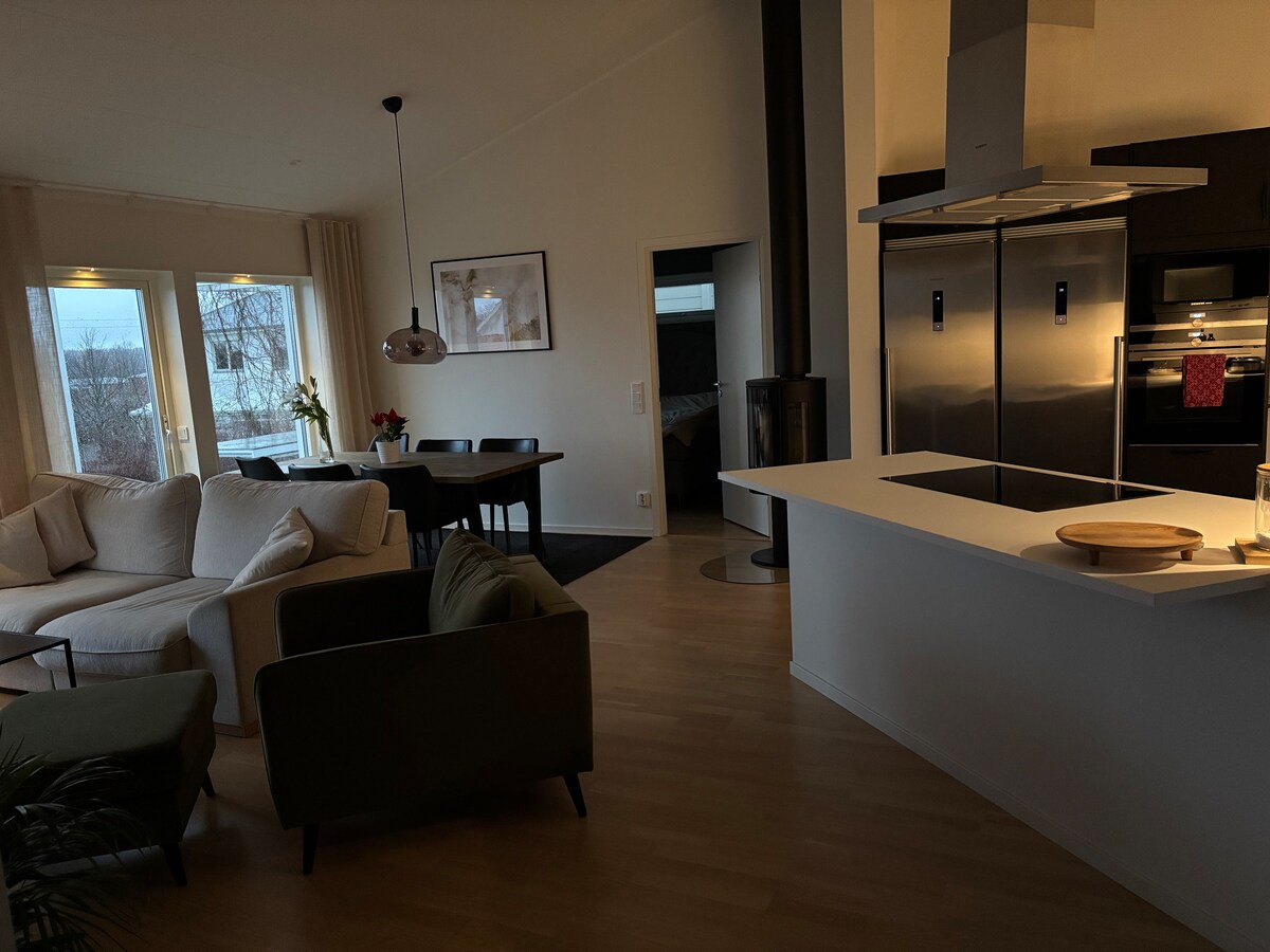 Indlu yeendwendwe esandul 'ukwakhiwa, eyakhiwe kakuhle, ecwangciswe kakuhle nendlu yeendwendwe enento yonke enendawo yokubuka ulwandle oluqaqambileyo. Yonwabela isidlo sakho sakusasa elangeni kwipleyiti ngaphezu kwendlu. Hamba ngeemitha eziyi-600 ukuya elwandle kunye nolwandle olunesanti oluyi-2 km olunomgangatho ophezulu wamanzi. Yenza uhambo oluvuyisayo kwiindawo ezininzi kunye nesixeko saseFalkenberg. Phelisa usuku ngesidlo sangokuhlwa kwithala elikhulu uze wonwabele ukutshona kwelanga okuhle. Indawo ethuleyo kakhulu. Kufuphi nehlathi elikhulu. Nceda uqaphele: azivumelekanga izilwanyana.