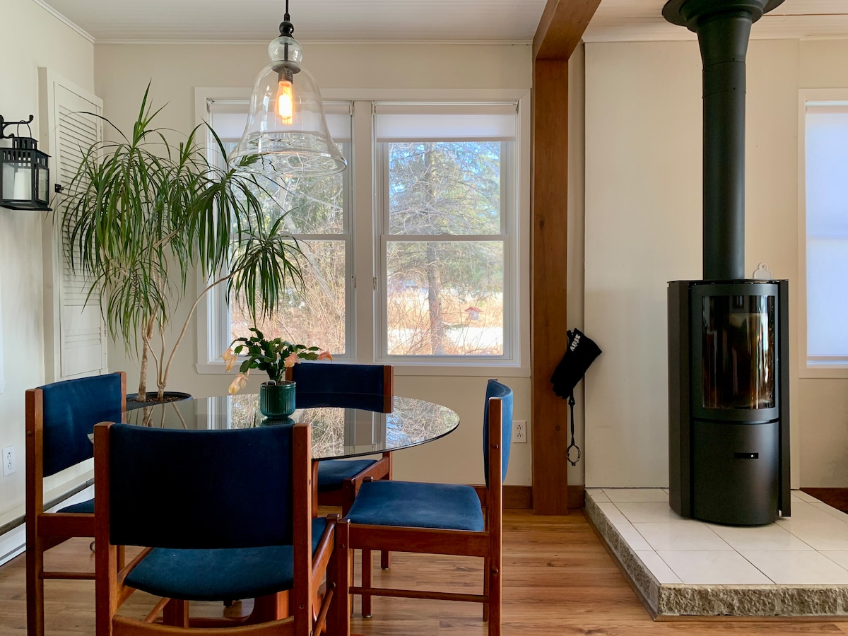 I-CITQ #306547 Tourism Québec I-loft etofotofo neyabucala eMont Sutton, ejikelezwe yimithi, kwindawo ethe cwaka nethuleyo, kodwa ekumgama wemizuzu eyi-2 ukusuka kwisikhululo sokutyibilika ekhephini nakwibhayisekile yasentabeni kunye neendlela zokunyuka intaba zaseP.E.N.S. (I-Sutton Natural Environment Park). Umzila we-Round Top ukhokelela kwingqungquthela enombono omhle wale ngingqi, kunye neJay Peak entle ne "Green Mountains of Vermont".