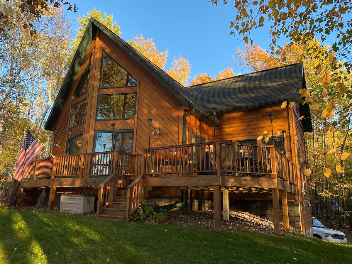 Escape to Border Point Lodge in Crosslake, MN! Enjoy beautiful views of peaceful Fawn Lake from this cozy lakeside retreat. Relax in the hot tub overlooking the water or unwind in the barrel sauna. Head outside for fun with kayaks, SUP's, yard games, or stay in & enjoy board games, DVDs, & plenty of space to relax after a day on the lake. Whether you're here to explore or simply recharge, Border Point Lodge is the perfect Northwoods getaway. Firewood is provided for your stay! 🔥