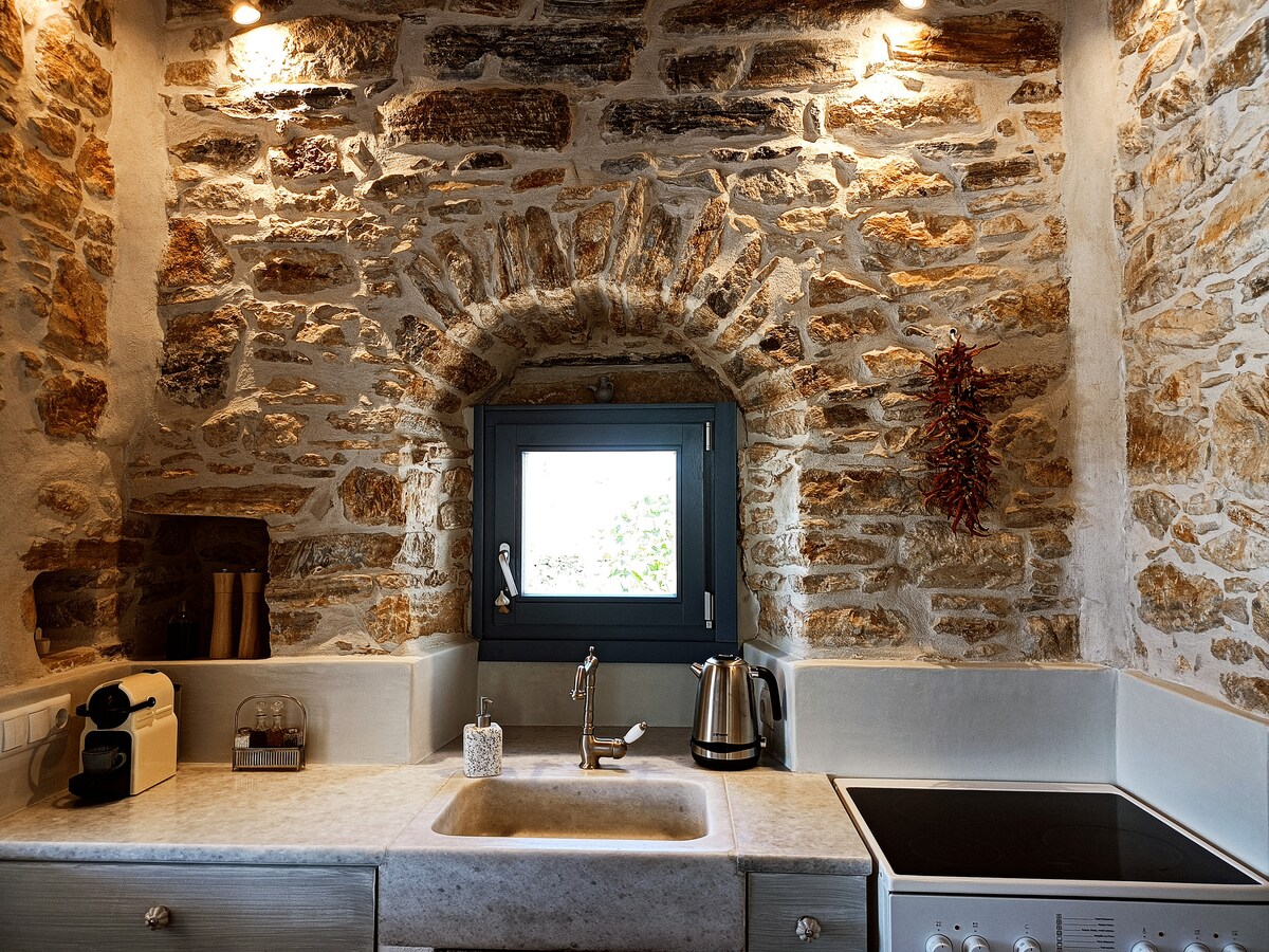 Indlu yamatye yango-1875, elungiswe ngokupheleleyo ngenxa yezakhiwo eziqhelekileyo zeCycladic ezinezinto ezinokusetyenziswa zale mihla, ubuhle obuphezulu neendawo ezintle. Ilungele ukuphumla, ukuzola nokunxibelelana nendalo. Yakhelwe embindini weNaxos, yeyona ndlela ifanelekileyo yokuya kwiilwandle ezintle zesi siqithi ibe isebenza njengesiqalo sokuhamba ngebhayisekile, ukunyuka intaba, ukunyuka intaba kwaye, ngokuqinisekileyo, ukunyuka uye phezulu kweyona ntaba iphakamileyo yeeCyclades.