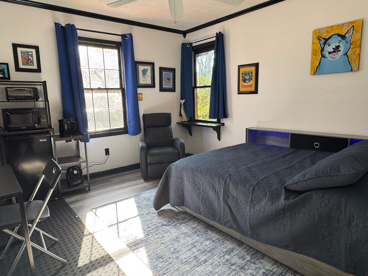 Eli ligumbi elikhulu elitofotofo elinebhedi enkulu enendawo yokungena yabucala, igumbi lokuhlambela nelokuhlamba impahla. Indawo yokungena eyahlukileyo kwindlu ephambili. Umda wemoto enye uvumelekile. Imizuzu nje eyi-6 ukusuka eGwinnett Hospital, eDiscovery Mill Mall naseGeorgia Gwinnett College, kwimizuzu eyi-10 ukusuka edolophini uLawrenceville Ifriji encinci, i-microwave, i-toaster nesikhululo sekofu. I-Smart TV neWiFi Iyunithi ye-AC eyongezelelekileyo yezo ntsuku zishushu! Izimuncumuncu namanzi asimahla. Izilwanyana zasekhaya, ukutshaya okanye ukutshaya i-vapor azivumelekanga naphi na kule ndlu.