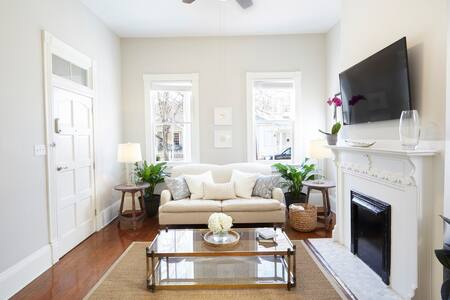 Le ndawo ilungiswe kakuhle ngo-1900 condo embindini weVictorian Historic District inika bonke ubutofotofo bezinto onokuzisebenzisa zale mihla ngoxa igcina uninzi lwezinto zakudala zayo zembali! Iitreyini ezinkulu, ezivelileyo kunye nendawo yomlilo yasekuqaleni zikhawuleza zithathe ingqalelo yakho xa ungena, nto leyo eyenza kube mnandi ukuncokola. Ifakwe iibhloko nje eziyi-2.5 ukusuka eForsyth Park kwindawo ehlala abantu, le gem inikezela ngokuphumla kamnandi ebusuku kodwa nje ukuhamba ngokukhawuleza kuyo yonke into iSavannah h