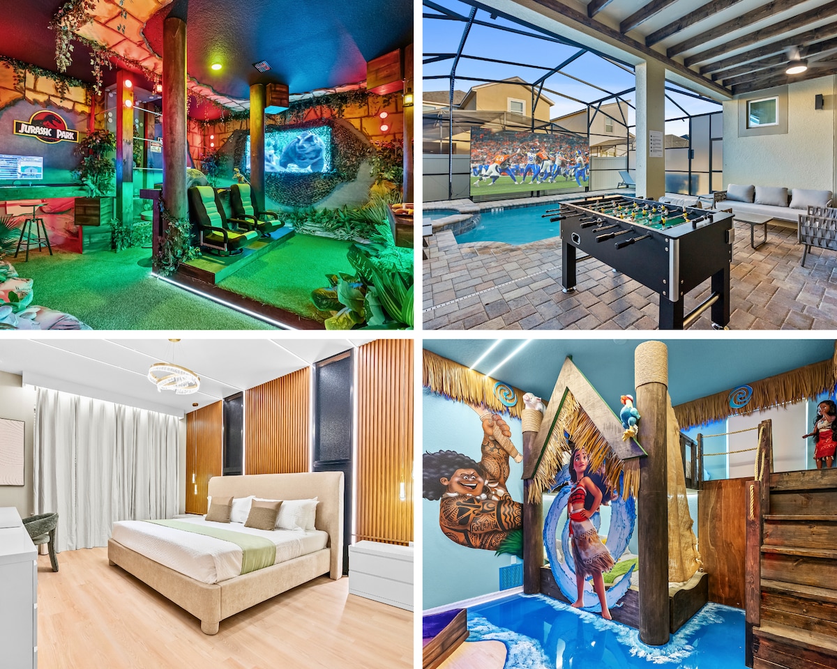 "Kwiimayile nje eziyi-3 ukusuka eDisney ukuya kutsho kwiindwendwe eziyi-16! Phola kwipuli kunye ne-jacuzzi. Indawo Yemuvi ephambili yabucala, enesikrini see-intshi eziyi-150, iprojektha ye-4K nesandi esijikelezileyo. Vuselela amaxesha eemuvi owathandayo kunanini na ngaphambili! Bukela iRoku, dlala kwiPS5, uze wonwabele i-Wi-Fi enesantya esiphezulu ukuze wonwabe kakhulu. Ikhitshi elinezinto ezifunekayo lilungele iintsapho ezinkulu ibe linamagumbi okulala ayi-6 namagumbi okuhlambela ayi-4, izinto eziyimfihlo ziqinisekisiwe. Iimfazwe Zeenkwenkwezi namagumbi anomxholo weDisney ukuze abantwana bazive besekhaya.
