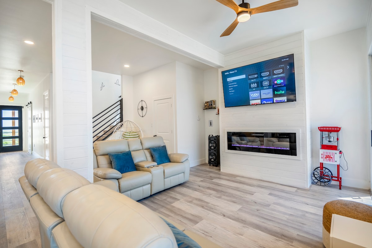 Ulwakhiwo OLUTSHA OLUNGAPHAMBI Kolwandle! Ngokwenene yi-Unicorn:🦄 INDAWO, UBUNEWUNEWU, kunye Nokumnandi Ukuba Nentsha! Ikude ngezona venkile zokutyela ziphambili nolwandle eSurfside! Yonwabela ii-hammocks nemidlalo phantsi kwendlu. Nyuka amanyathelo ukuya kumgangatho omangalisayo onomthunzi kunye nokubukwa ukusuka eSan Luis Pass ukuya kwiJetty! Ngaphezulu kwe-180 degree iimbono ezingabonakaliyo. Amagumbi okulala avulekele iSunDeck nokujonga iinkwenkwezi ngomgodi 🔥 womlilo iYouTube Beachfront Luxe yevidiyo Imali yokucoca eyi- $ 125 ne $ 75 kuphela xa iyonke yezilwanyana zasekhaya ukuya kutsho kweziyi-2 eziza kuhlala ixesha elipheleleyo!