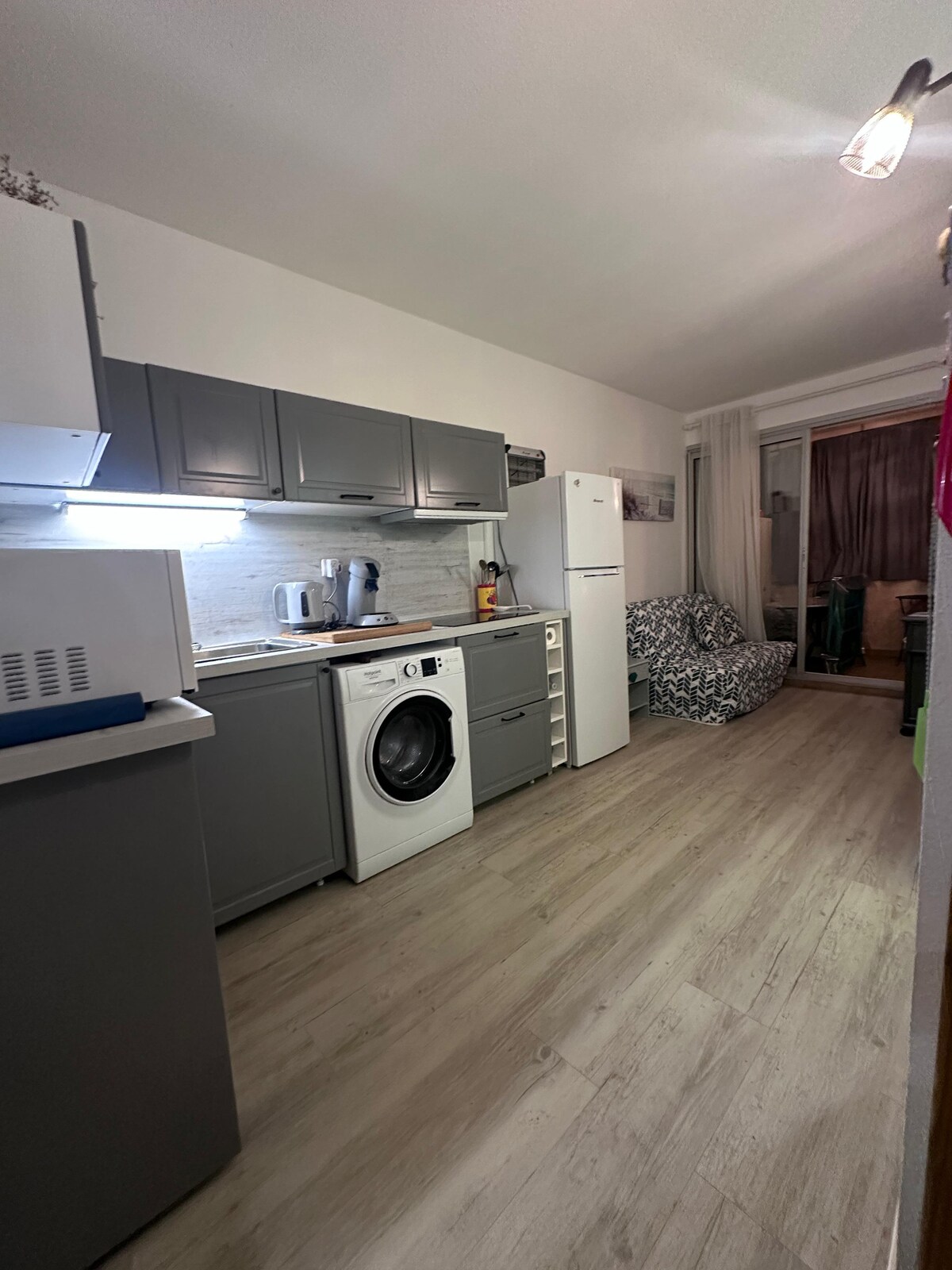 Ixhotyiswe ngokupheleleyo isitudiyo esinefenitshala eSète, kubantu aba-4 abakwindawo ekhuselekileyo enendawo yokupaka evaliweyo. Kwindawo yokuhlala ekwazi ukungena ngqo elunxwemeni. Le studio inebhedi ekwayisofa entsha netofotofo, ibhedi elala umntu omnye, nebhedi ekwayisofa enye. Isitudiyo sinegumbi lokuhlambela, indlu yangasese eyahlukileyo, ikhitshi elincinci elinento yonke. Ngaphezu koko, kukho indawo yokupaka yabucala Amashiti ebhedi atshintshwa phakathi kokuqeshisa ngakunye. Imbonakalo yolwandle, i-wifi