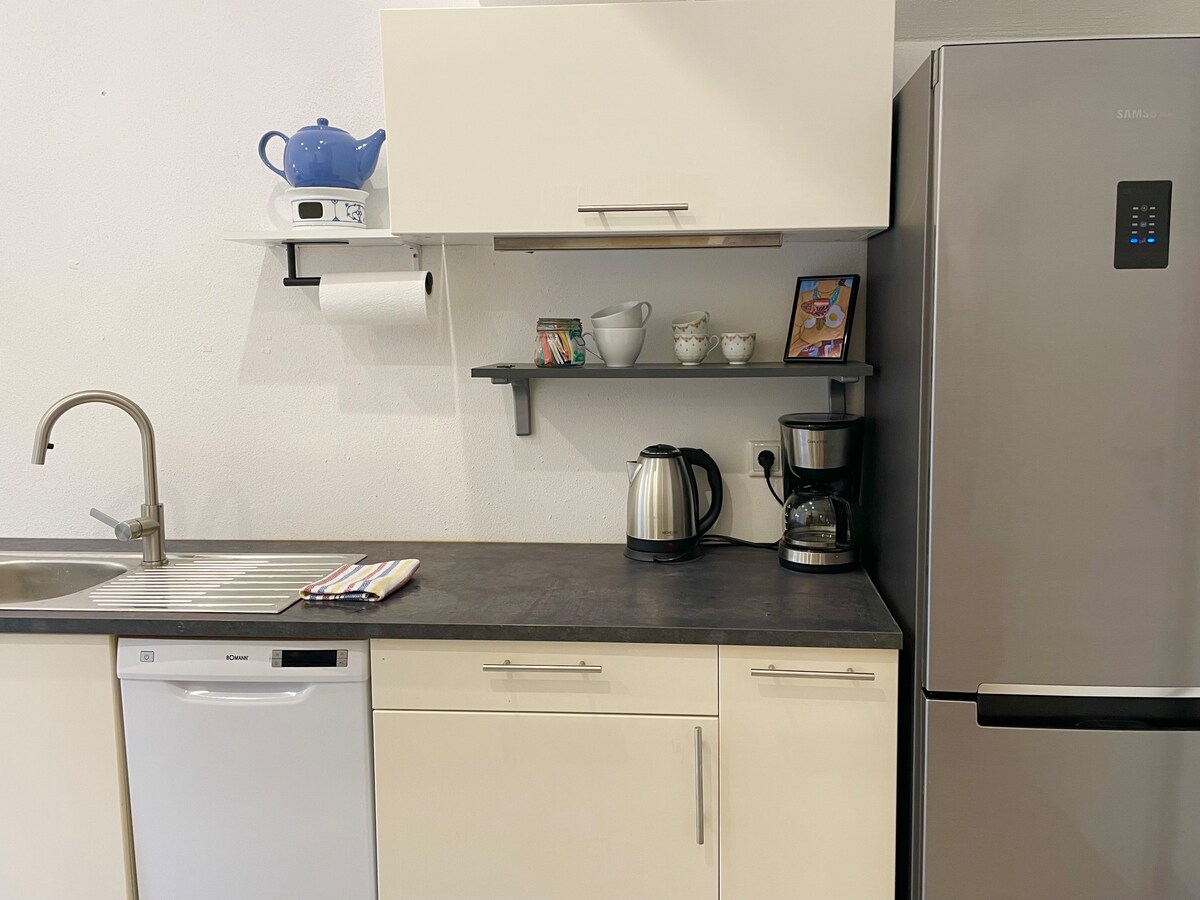 Le flethi inendawo yokuhlala emalunga ne-70 m² ibe ikumgangatho wokuqala wendlu endala elungiswe kakuhle kufutshane nekona edumileyo yasePassau edumileyo ekwi-Inn. Indawo ithe cwaka kakhulu, yindawo yokuhlala kuphela enefestile eya kwiyadi yesikolo apho umfundi wexeshana khona. Le flethi inento yonke onokuyidinga, iimpahla ezininzi, izitya, izixhobo zasekhitshini, njl. Ilungele abantu abayi-2, kodwa kukho ibhedi eyisofa eyongezelelekileyo.