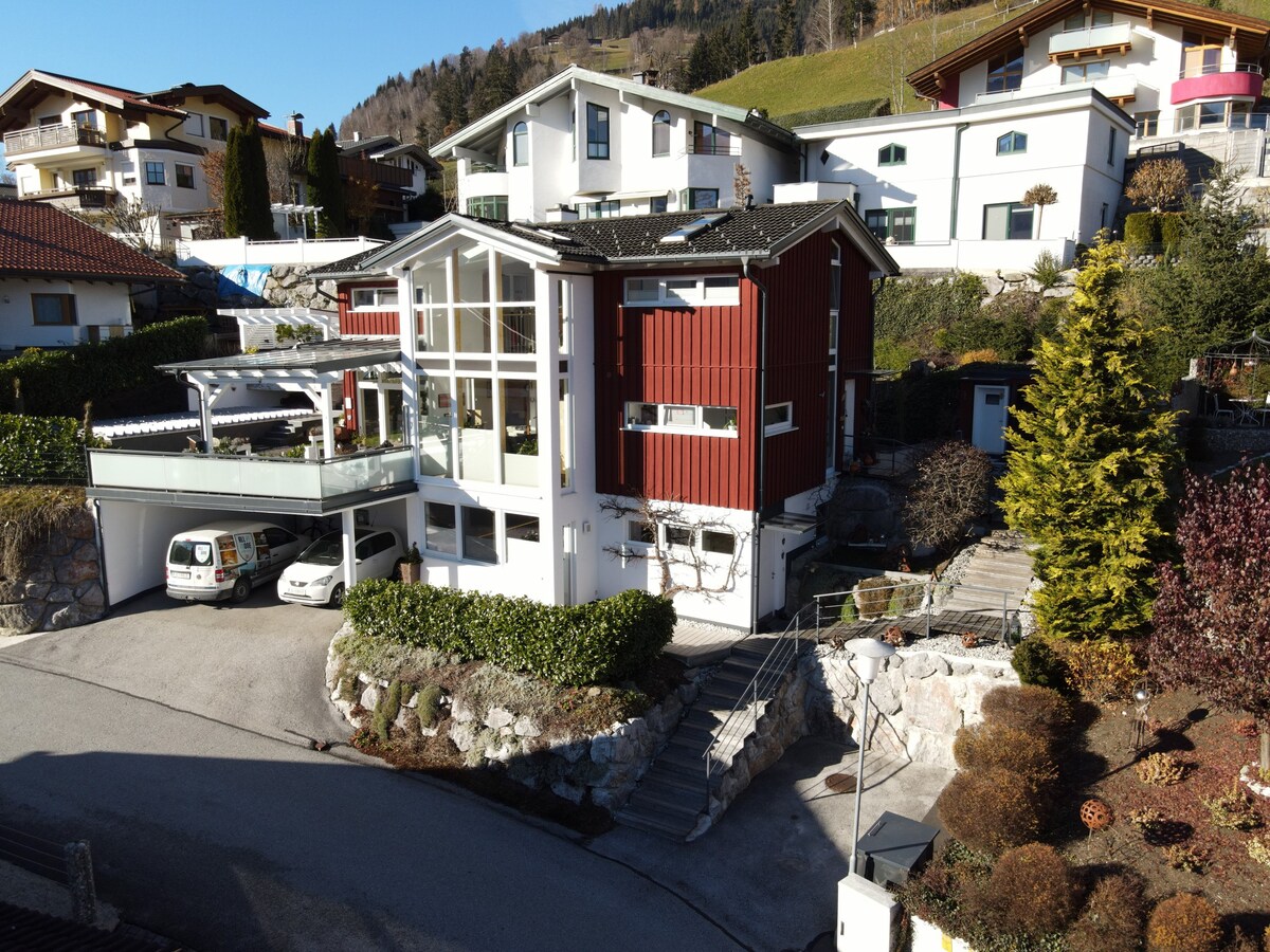 Ifama yethu ephilayo eqhutywa yintsapho ikumgama we-985 m ngaphezu kolwandle ibe inendawo entle kwii-alps. Sijikelezwe ziindawo zokutyibiliza ekhephini: UZell am See-Schmittenhöhe, Kaprun-Kitzsteinhorn, Kitzbühel, Saalbach-Hinterglemm kunye noLeogang. Ukongeza, i-Krimml Waterfalls kunye neGrossglockner High Alpine Road zikufuphi. Le flethi ikumgangatho osezantsi wendlu esefama. Inendawo yayo yokungena kunye neveranda ekhuselekileyo entle enendawo entle ekwindawo entle ecaleni kwegadi enkulu.