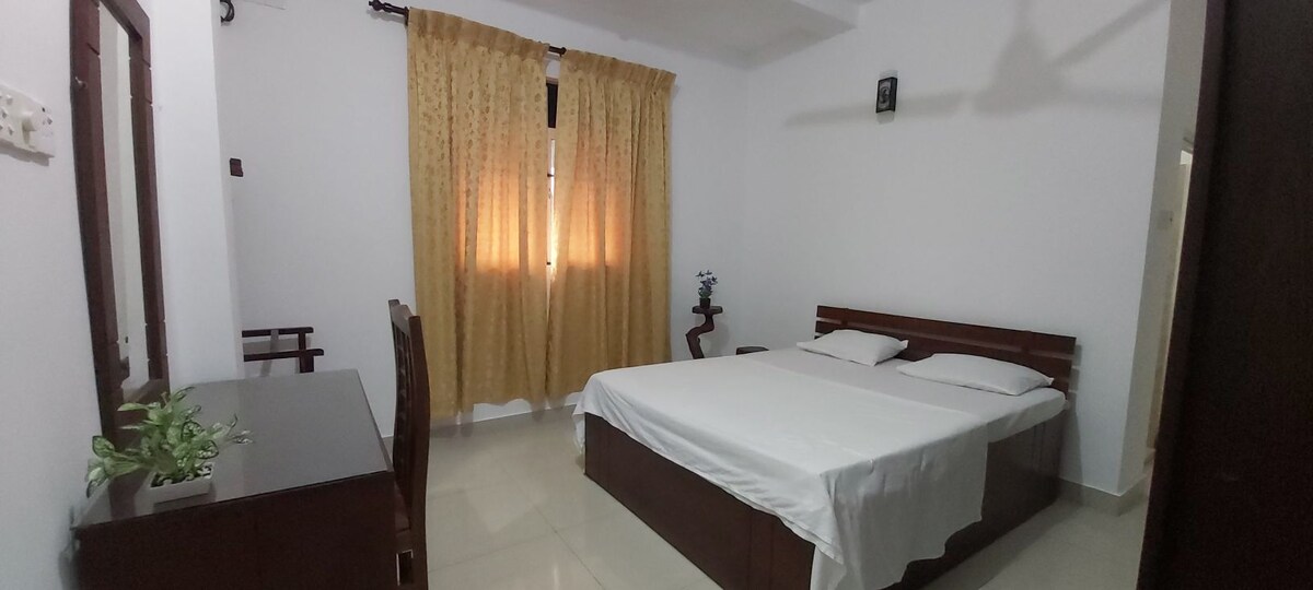 Ibekwe embindini wedolophu entle engaselunxwemeni, le flethi ikhululekile, ihonjiswe kakuhle, yale mihla ikunika ubunewunewu bokuqeshisa ngendawo yabucala eneenkonzo neendawo zehotele. Le flethi inefenitshala ekumgangatho ophezulu enekhitshi elinento yonke nefenitshala ekumgangatho ophezulu onokuyilindela ukuze uhlale kamnandi. Umgama ohamba ngeenyawo ukuya kwi-Supermarket, elwandle nakwimarike yeentlanzi. Galle Core Train and Bus station, Cricket stadium is just 5-10 minutes away from the apartment.