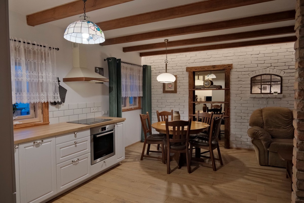 Szukasz miejsca gdzie naprawdę odpoczniesz? Zapraszam do klimatycznego, całorocznego domku położonego na odludziu w malowniczej, leśnej okolicy, z ogromem prywatności oraz przestronnym podwórkiem. Najbliższe sąsiedztwo oddalone o ok. 200-300 m Do dyspozycji gości 2 sypialnie oraz salon. Jednak nic nie stoi na przeszkodzie, aby więcej osób przebywało w domku (można spać na podłodze, na podwórku można też rozbić namiot). Zwierzęta również mile widziane :) Prywatne jacuzzi dostępne cały rok.