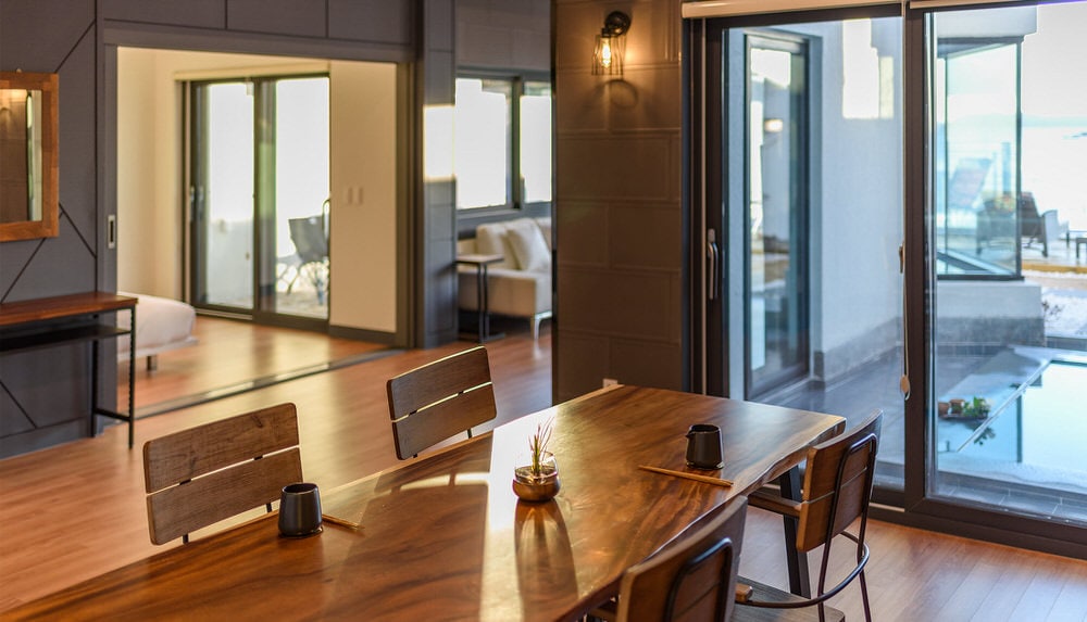 바다의기분 301호는 통영 미륵도 바닷가에 위치한 35평 복층 스위트입니다. 킹침대 2개, 통창 오션뷰 라운지, 홈카페 다이닝으로 구성되어 가족·연인에게 적합합니다. 하이라이트는 **루프탑 인피니티풀(2.5×6m·깊이1.3m·온수옵션)**과 노천탕, 프라이빗 썬베드 테라스입니다. 성수기(78월) 프리미엄 요금, 겨울(113월) 풀 미운영. 2인 기준, 최대 4인. Sea Mood 301 is a 35㎡ duplex suite on Tongyeong’s oceanfront. Features 2 king beds, ocean-view lounge & café dining. Highlights: rooftop infinity pool (heated), open-air bath & sunbeds. Peak season premium (Jul–Aug), pool closed in winter (Nov–Mar). For 2 guests, up to 4 max.