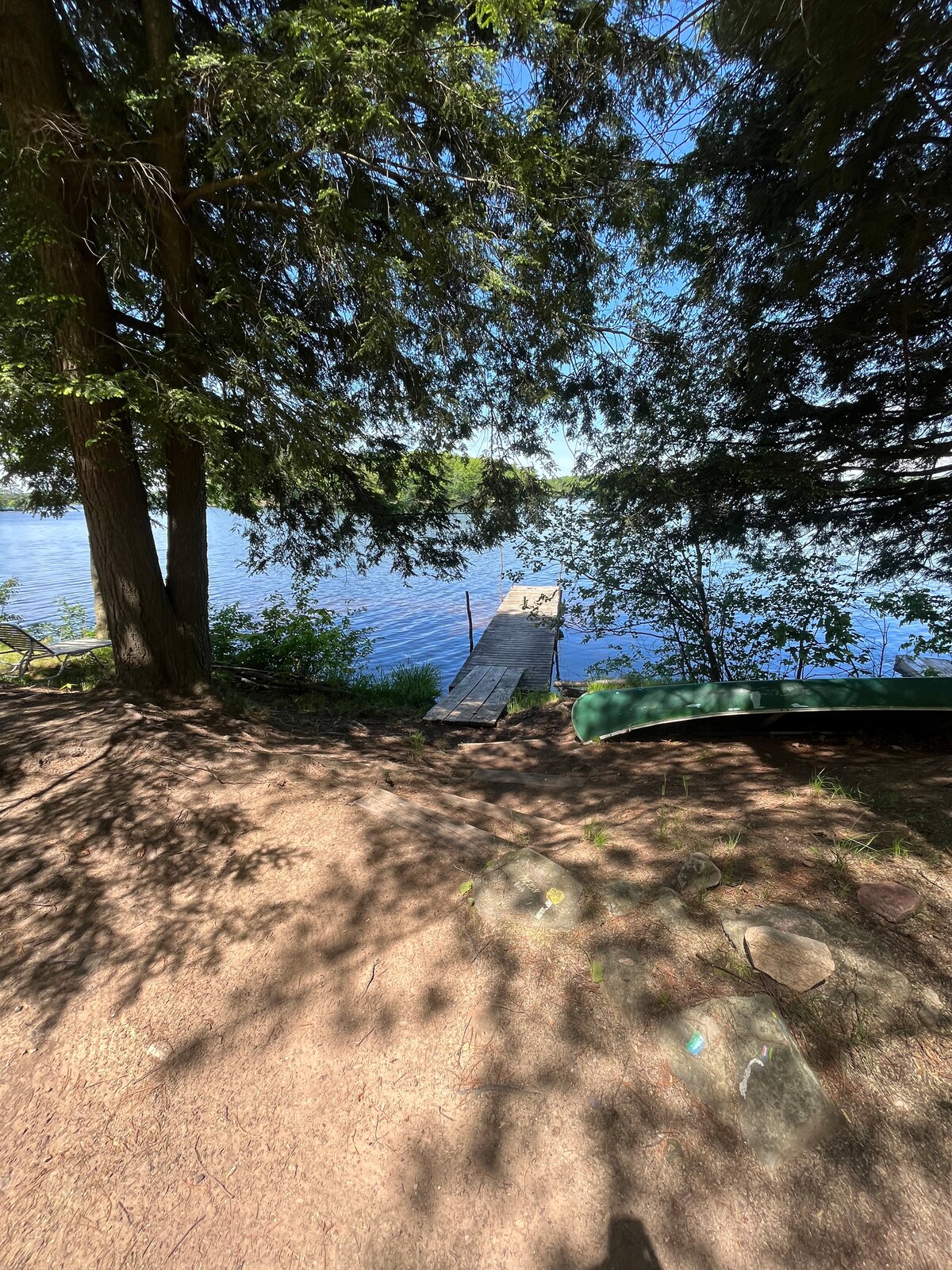 Indawo engaqhelekanga ephambi kwechibi, indawo yokungena echibini yabucala! Yiza nesikhephe sakho, okanye usebenzise esinye sethu! Phola kwiveranda ehonjisiweyo ngoxa ubukele izilwanyana zasendle echibini. Inyama eyojiweyo kwigrili yethu yamalahle, emva koko wonwabele umdlalo we-cornhole okanye i-SpikeBall kufuphi nendawo yomlilo esechibini. Phonsa umgca wokuloba kakuhle ngaphambili, okanye utyhalele izikhephe emanzini uze ubuke iBirch Lake. Emva kosuku olupheleleyo, umoya kwibhafu enamanzi ashushu - efumanekayo ukuze wonwabele unyaka wonke!