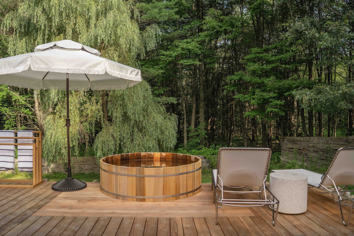 Ifreyimu yeglasi yale mihla ihleli kwiiCatskills, enee-vistas zeentaba ezitsalwayo. Zipholele kwisauna yabucala eyenziwe ngomthi we-sedar neshawa epholileyo yangaphandle, nihlangane nijikeleze itafile yomlilo yepropane engenamsi, okanye nisebenzise i-propane grill xa nisitya ngaphandle. Igumbi lokulala elihle elineendawo ezakhiwe ngamaplanga, izinto zebhedi zikanokutsho, iWi-fi ekhawulezayo nendawo yokubasa umbane etofotofo zidibanisa ubutofotofo nokuhonjiswa. Imizuzu yokuhamba, iingxangxasi kunye neemarike zamafama - ilungele abantu abatshatileyo abafuna iholide ezolileyo nehlaziyayo.