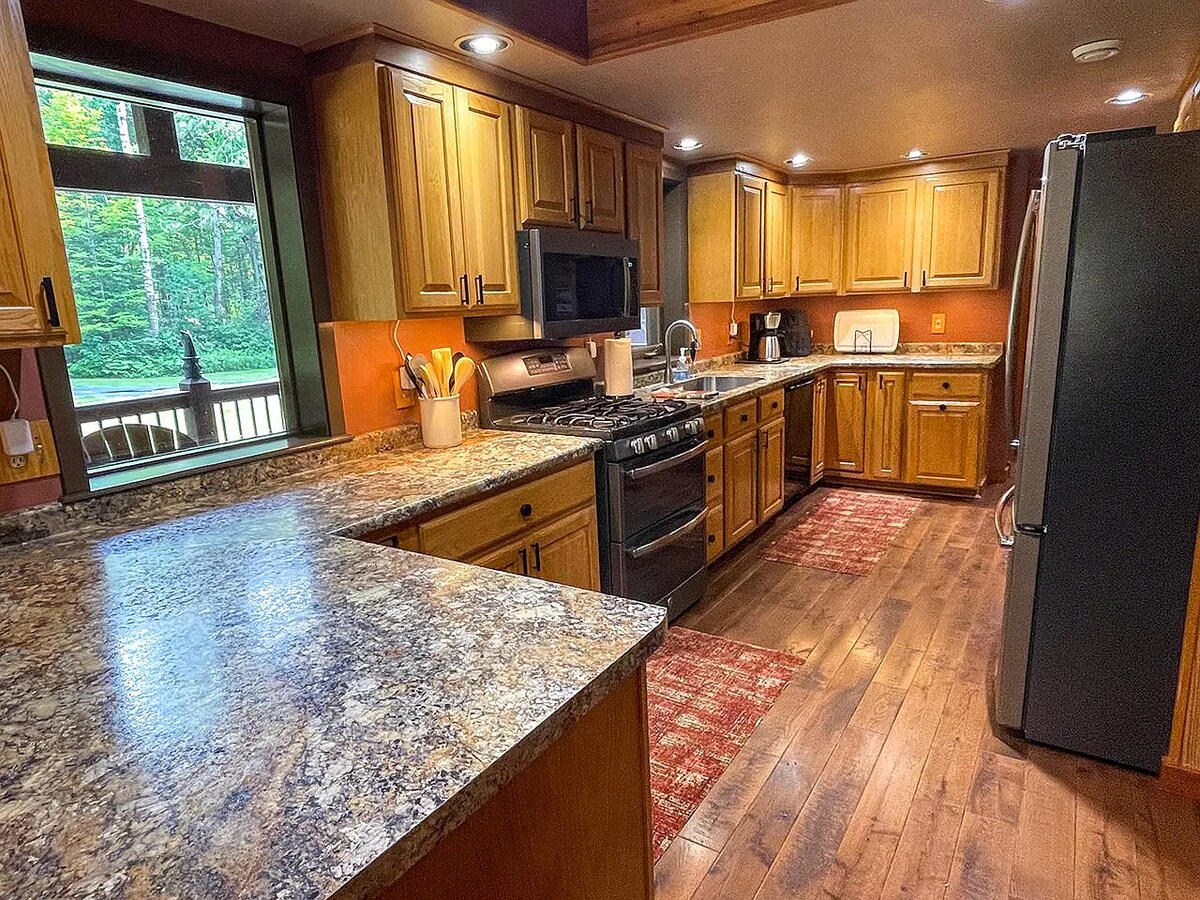 Indlu yeholide eyakhiwe ngamaplanga entle, ejikelezwe yimithi yeepine kumlambo i-pelican. Indlu yethu yamaplanga ihleli ekupheleni kwe-drive yabucala apho izandi kuphela zezo zomlambo i-pelican zikhawuleza! Uxolo olumangalisayo nolutofotofo! Yonwabela i-cocktail kwizibuko lethu labucala elisecaleni komlambo, ii-marshmallows ezigudle umngxuma womlilo, okanye udlale imidlalo uze ubambe imuvi ngaphakathi! Hamba ngephenyane emlanjeni, uphumle emgangathweni, okanye udlale ibhegi ngasemva eyadini! Iindlela ezininzi ze-ATV/UTV/Ukuhamba ngebhayisekile/ukunyuka intaba kwiimayile ezimbalwa