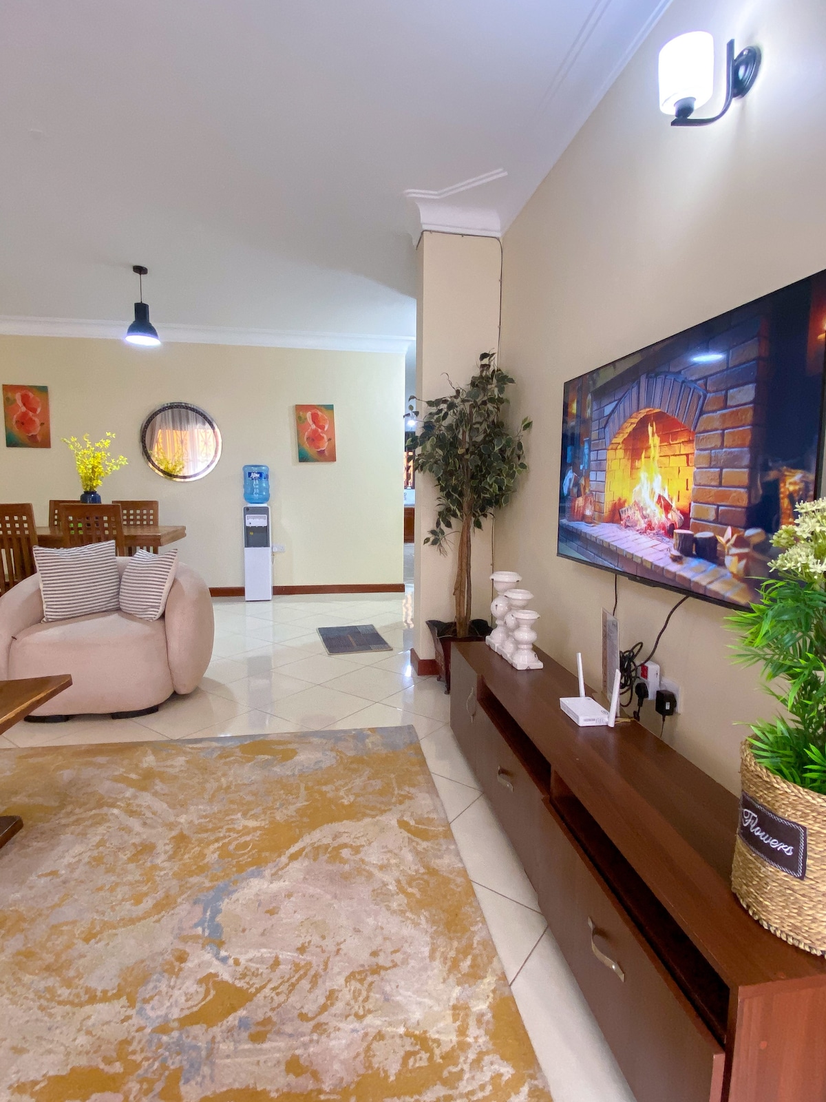 Iflethi enobunewunewu, enkulu, enefenitshala epheleleyo enamagumbi okulala ayi-2 eKisasi Kikaya, eKampala, yeyakho yonke!Ucoceko lubaluleke kakhulu, zonke iibhedi kunye neetawuli zimhlophe kwaye iflethi icocwa yonke imihla ngaphandle kweendleko ezongezelelweyo!Ikumgama nje omfutshane kwiTempile yaseBahai, kwaye ikwi-5KM kuphela xa uqhuba xa usuka kwi-Acacia Mall. Iibhalkhoni eziyi-3 zokubuka indawo. Ikhitshi elinezixhobo zombane zale mihla. I-Smart 55 inch TV! Iigadi eziluhlaza ngaphandle ne-pergola efanelekileyo yokwenza iinkumbulo. Iintyatyambo zikhethwe ngothando!