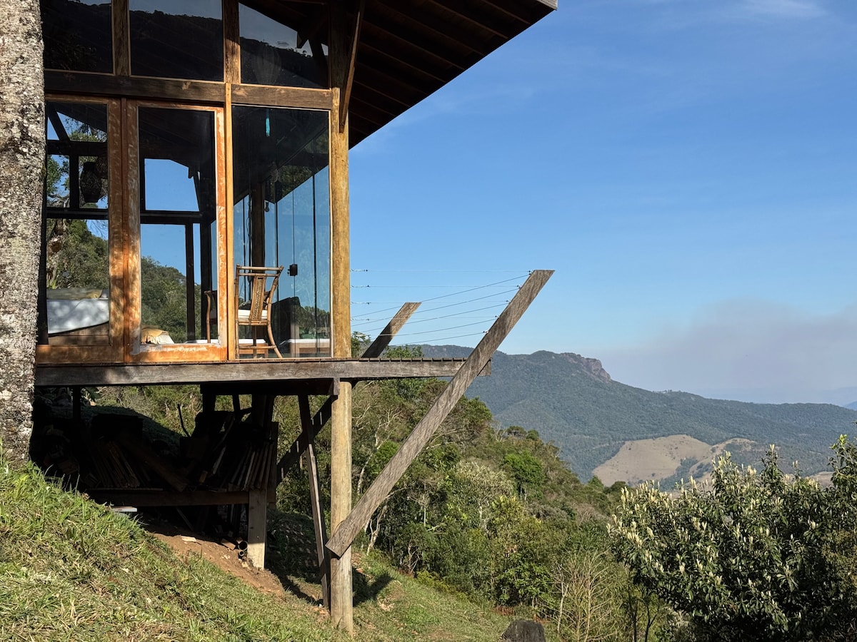 Indlu yeholide eyakhiwe ngamaplanga entle ebonakala kakuhle ePedra do Baú