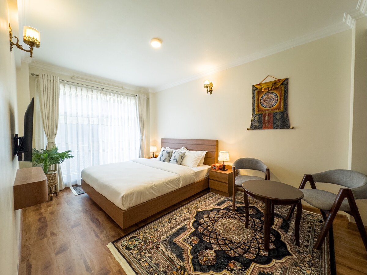 Welcome to Kibu Apartments! Our apartment is in a great location: a 5 minute walk from Boudha stupa. This charming apartment is perfect for couples or solo travelers looking for a serene and comfortable stay in a quiet and relaxing environment.The unit features a calm and soothing decor that creates a tranquil and restful atmosphere. The bedroom is spacious and comfortable, with a plush queen-sized bed, soft linens, and plenty of storage space. You can be at ease at your home away from home.