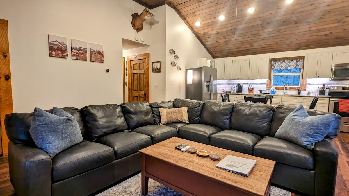 Phumla uze uphumle kule ndawo ithuleyo nehonjiswe kakuhle. Le ndlu yamaplanga ihonjiswe kakuhle kakhulu inazo zonke! Ukuphela kwendlela, ukubukwa kweentaba okumangalisayo nokutshona kwelanga okumangalisayo kulindile wena neendwendwe zakho. Le ndawo yale mihla inamagumbi okulala ayi-3, iindawo zokuhlala eziyi-2, amagumbi okuhlambela ayi-2 apheleleyo nekhitshi elikhulu. Phola emgangathweni uze ubone iindawo okanye uhlale ujikeleze umngxuma womlilo otshisa imijelo. Siyabathanda abahlobo bethu abanoboya ngoko yiza nenja yakho (imali yesilwanyana sasekhaya ngu-75.00) kwaye uhlale kamnandi, Yeyona nto ibhetele!