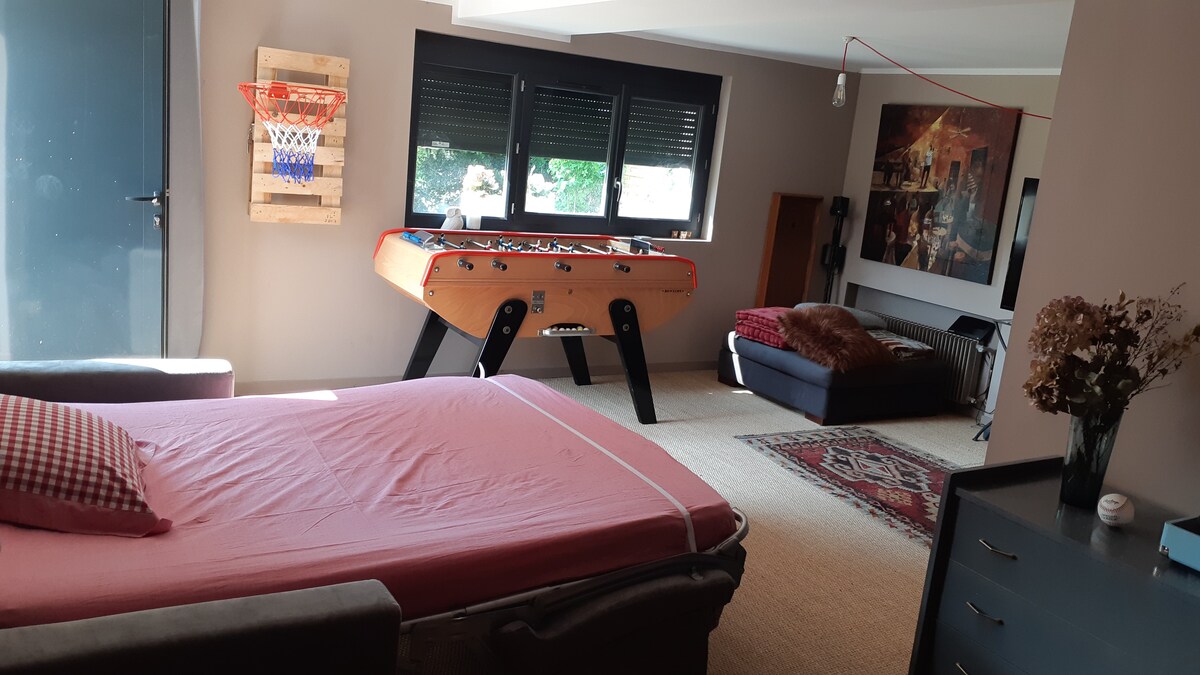 Isitudiyo esincinci esinezinto ezipheleleyo, esilungele ukuhlala ixesha elifutshane kufutshane neLyon neGroupama Stadium. Ifumaneka kwingingqi ethe cwaka, inebhedi esesofeni, ikhitshi elinomatshini wokwenza ikofu, igumbi lokuhlambela labucala elinomatshini okhupha umoya obandayo okanye oshushu. Imizuzu eyi-5 xa uhamba ngeenyawo usiya kwisikhululo sikaloliwe, iLyon iyafikeleleka kwimizuzu eyi-10 ngololiwe okanye ngemizuzu eyi-15 ngemoto. Ilungele iholide, ikhonsathi okanye uhambo lwezoshishino!