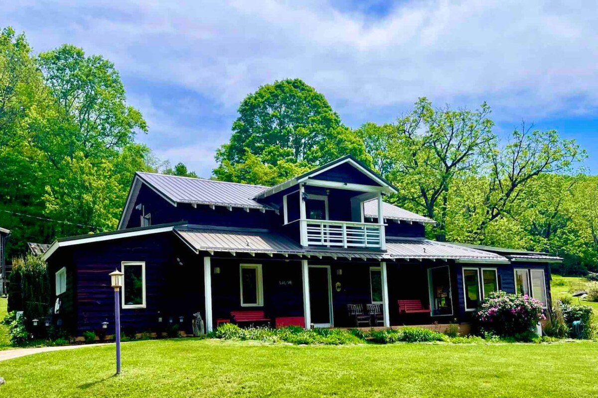 Indawo yelizwe ekufutshane neBlue Ridge Parkway kunye ne-TV ethe ngqo/i-Smart TV kwigumbi lokuhlala kunye negumbi lokulala, i-wifi, i-AC, umatshini wokuhlamba/wokomisa impahla, ikhitshi elilungiselelwe abapheki, igadi yemifuno, umatshini wokwenza umkhenkce, umatshini wokuhlamba izitya, ichibi, i-pavillion, i-firepit, i-firepit, iinkuni ezidubulayo ngeempelaveki, iveranda/izitulo ezihambayo. Izicelo ezikhethekileyo zamkelekile! Ibhedi enkulu ekhululekile, i-100% yamashiti ekotoni, yonke imiqamelo ye-Serta. Ukuthula noxolo. Abantu abangekho kuphela! Izilwanyana zasekhaya ezinemvume yangaphambili. Senze ubumnandi!