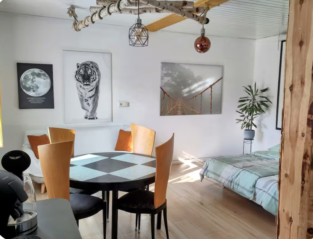 NCEDA UFUNDE INGCACISO ngononophelo ukuze sikwazi ukukwamkela kakuhle endlwini yethu. Uya kufumana indawo yokuphumla enoxolo, iindlela ezinkulu zokunyuka intaba, ukuthula okuninzi kunye nekhaya elifanelekileyo. Ixabiso elisisiseko lelokufikelela kubantu abayi-4, kuquka ISTUDIYO (IGUMBI lokuhlala, ikhitshi, igumbi lokuhlambela) kunye negumbi LOKULALA ELIYI-1 . Ukuba ufuna ELINYE IGUMBI LOKULALA (ibhedi elala abantu ababini eyi-1) nceda UBHUKISHE ABANTU abayi-5.